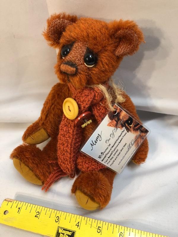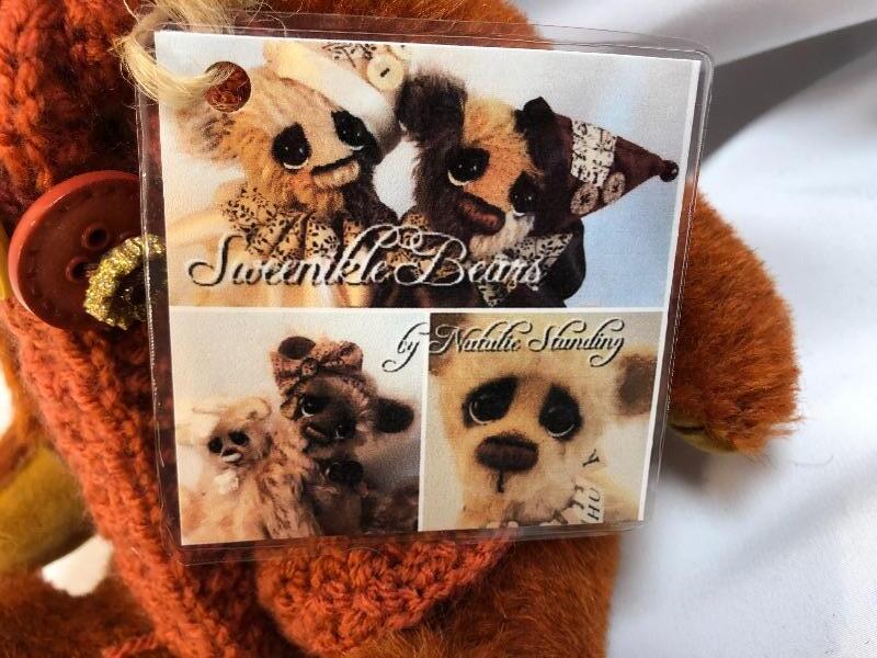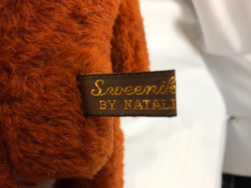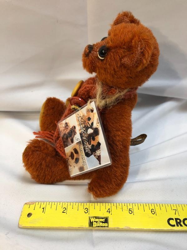 Rusty brown Sweenkle Bear by Natale Standing. Sad eyes. Jointed limbs. Has all tags.