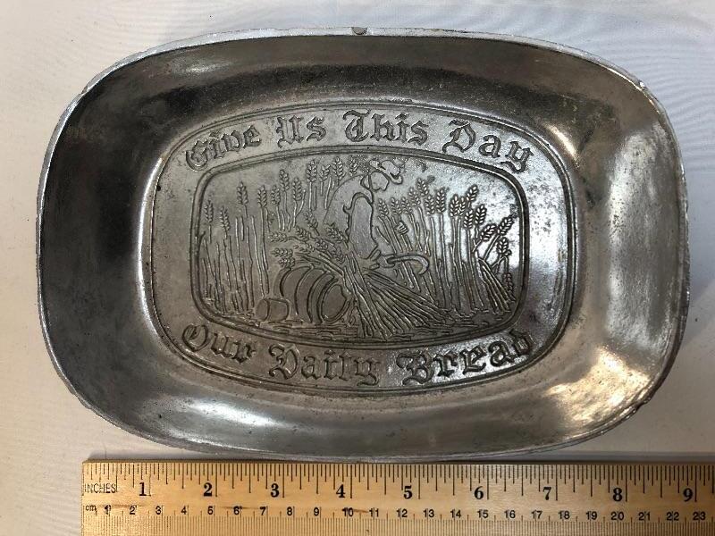 Give Us This Day Our Daily Bread pewter plate. Good vintage condition.