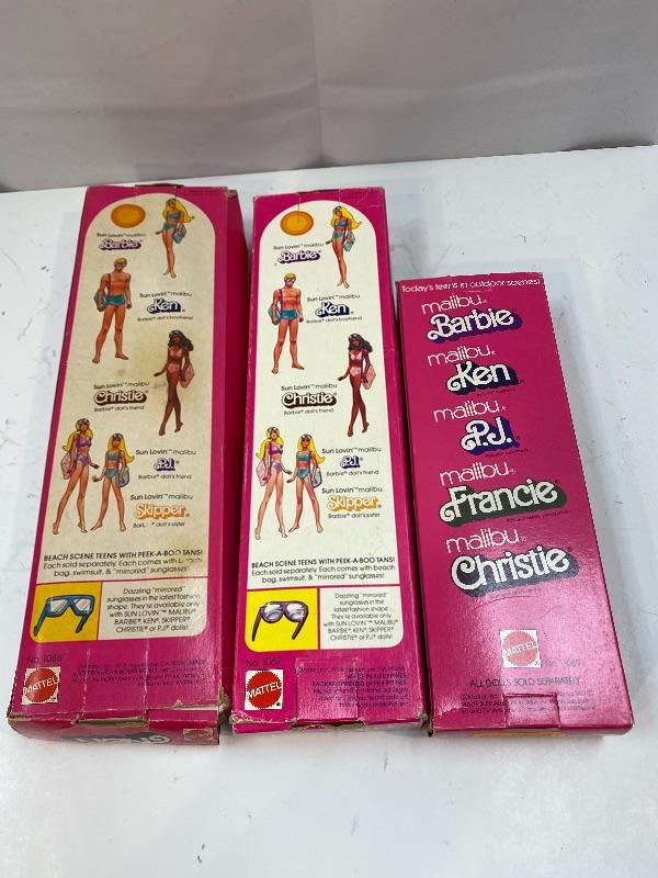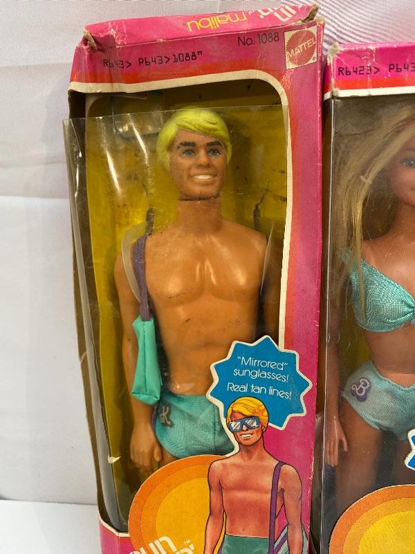 Vintage 1978 SUN LOVIN' Malibu Barbie Ken & 1975 Malibu Skipper Original Boxes YD#27-0005