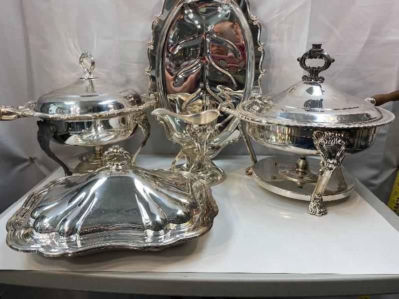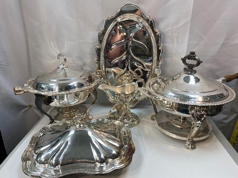 Mixed 5 Piece Vintage Silver Plate Serving Lot YD#022-0368