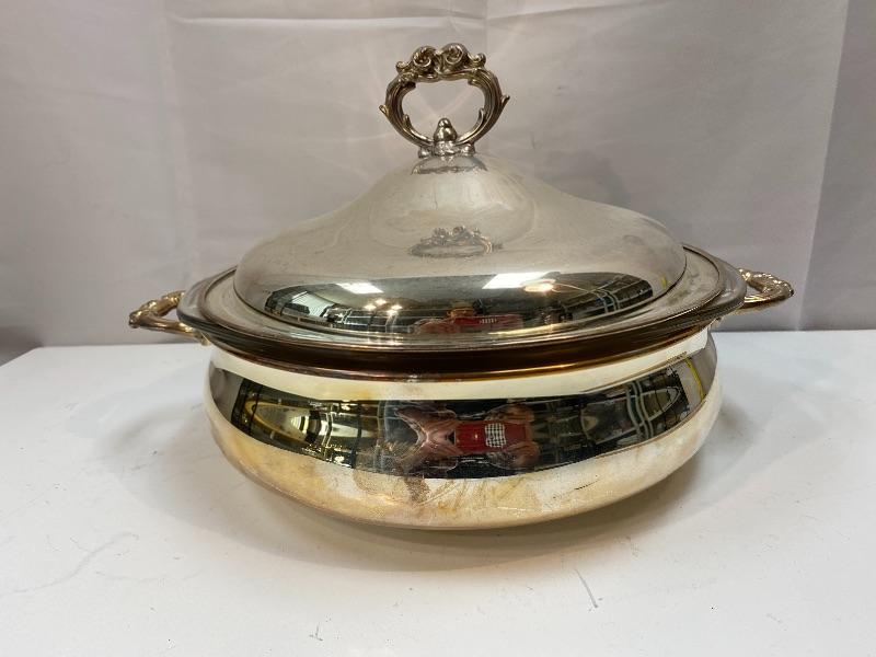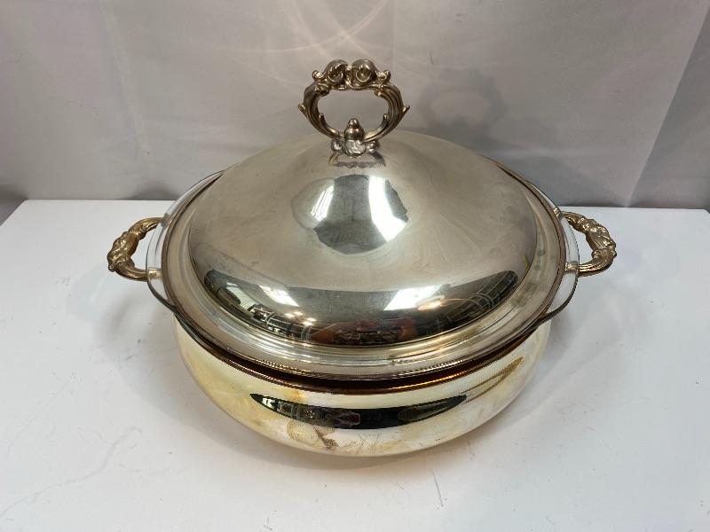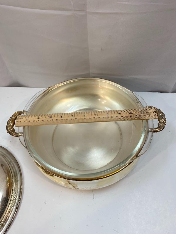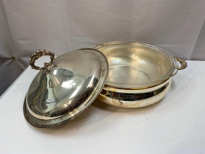 Vintage Silver Plate English Silver Lidded Casserole Dish with Pyrex Bowl YD#022-0371
