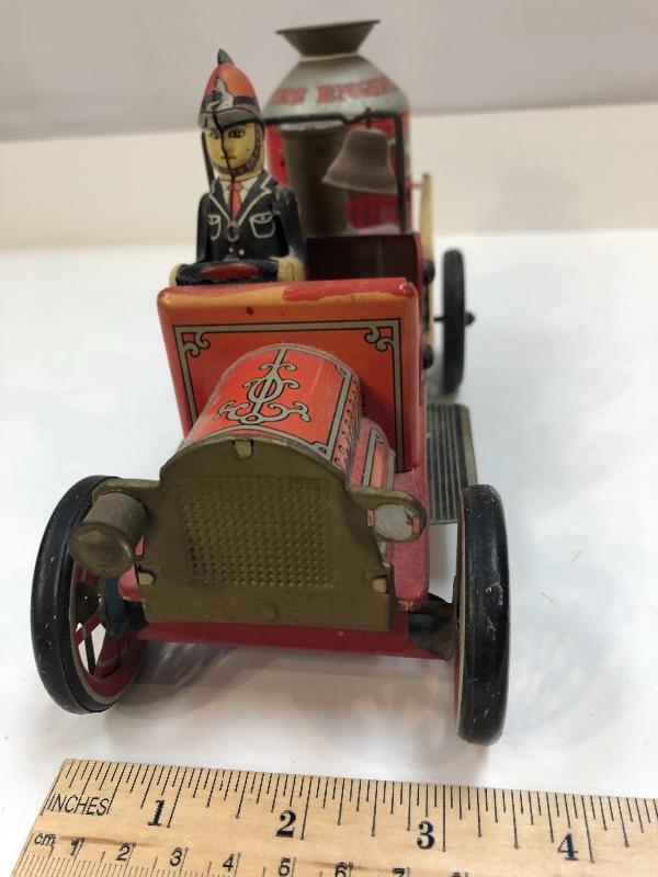 Vintage Trade Mark Modern Toys Firetruck Tin Litho Toy Friction Car