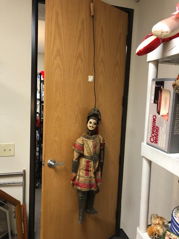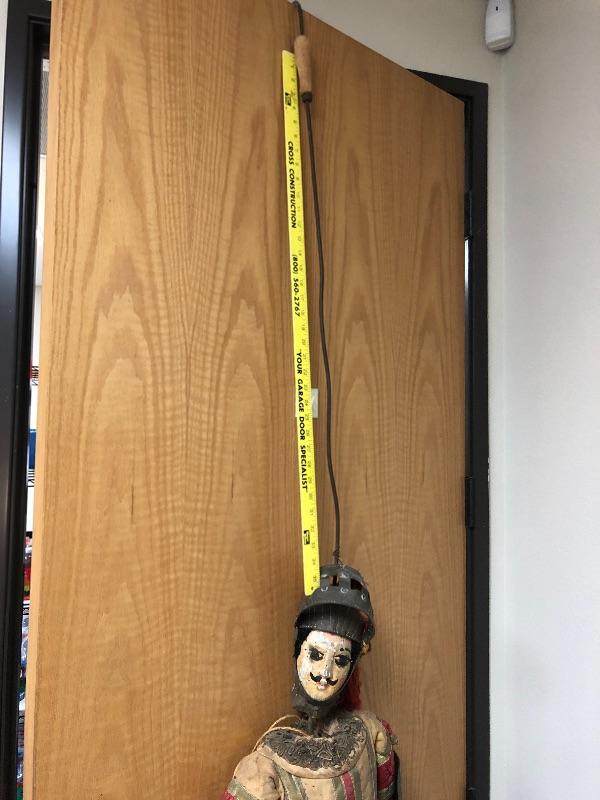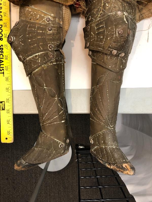 Vintage Spanish soldier conquistador marionette puppet. Stick puppet has a long metal rod from its body. Has signs of wear but displays nice. About 6' total length. Unsure of exact age but he looks pretty old. He is fragile. Wearing real metal pieces of armor.