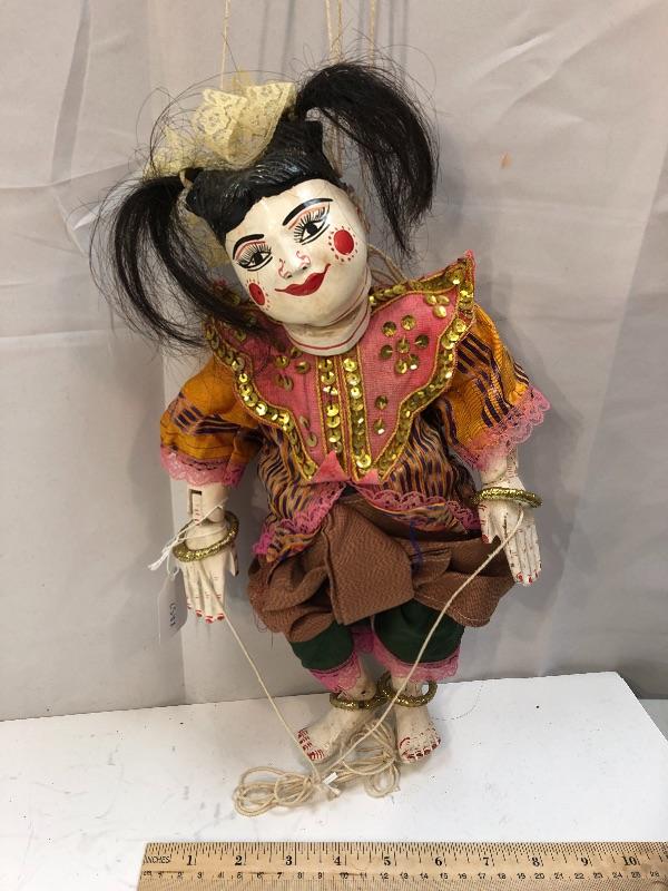 Vintage Asian Thai girl marionette string puppet. Puppet is almost 15" with out strings. Displays nice.