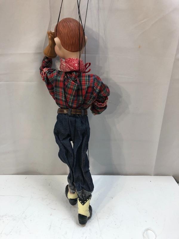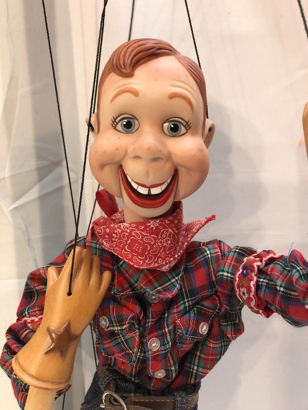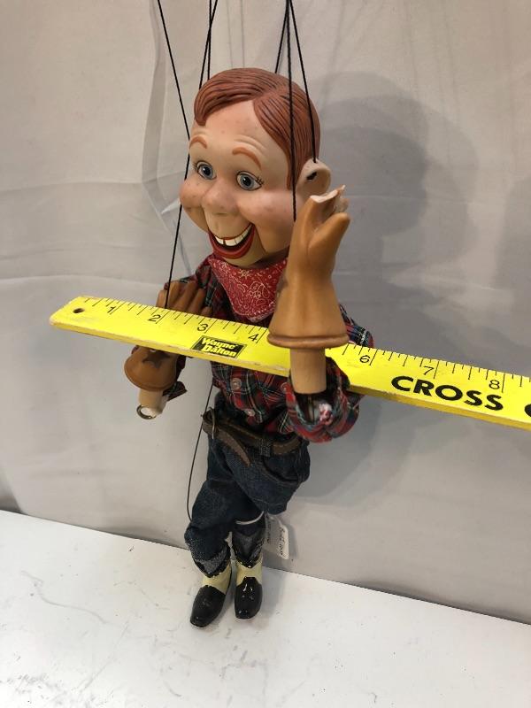 Danbury Mint replica Howdy Doody marionette puppet. Porcelain pieces, there is damage to one glove and a boot. About 16" size without strings. Displays good.
