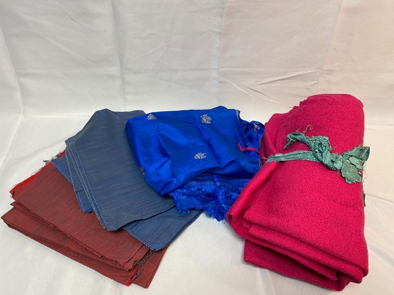 Lot of vintage fabric. Found amongst the other vintage clothing items in this auction. Unmeasured, did notice that there are some cut pieces so these may not be one complete piece of fabric. Good condition.