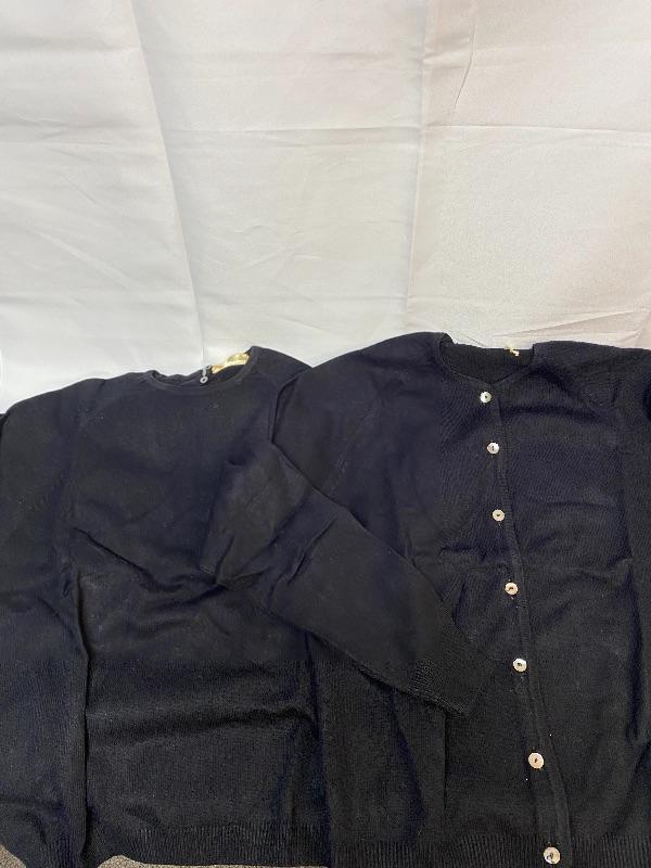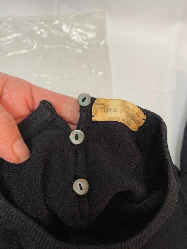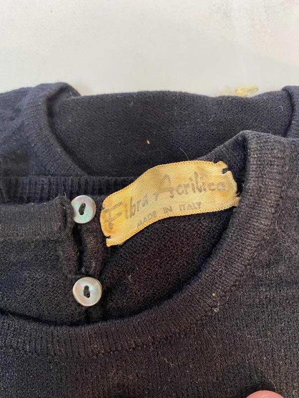 Vintage two piece black sweater set. Short sleeve pull over has a couple buttons on the back, long sleeve has buttons done the front. Good vintage condition. Previously worn. Believe it is the same as the others an Italian 46 which would be a large, but sizes ran smaller so may be closer to a modern medium.