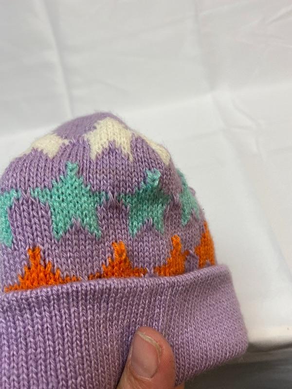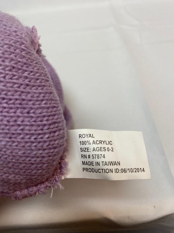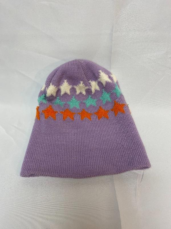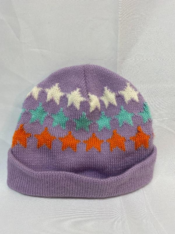 Youth size purple with stars beanie hat. Good previously owned condition. Tag inside says it is for young children, ages 0-2.