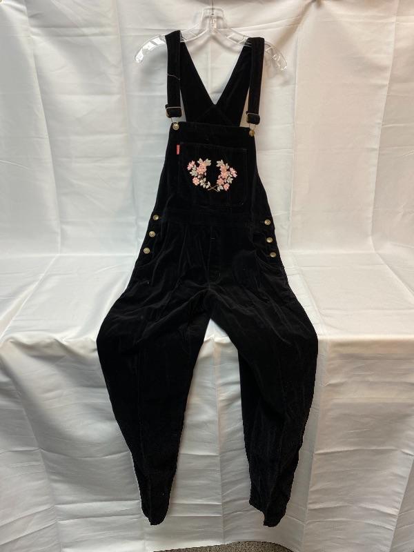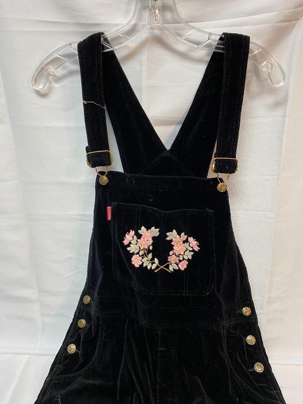D'Mode Classix Black Velveteen Pink Flower Embroidered Overall Pants Size L