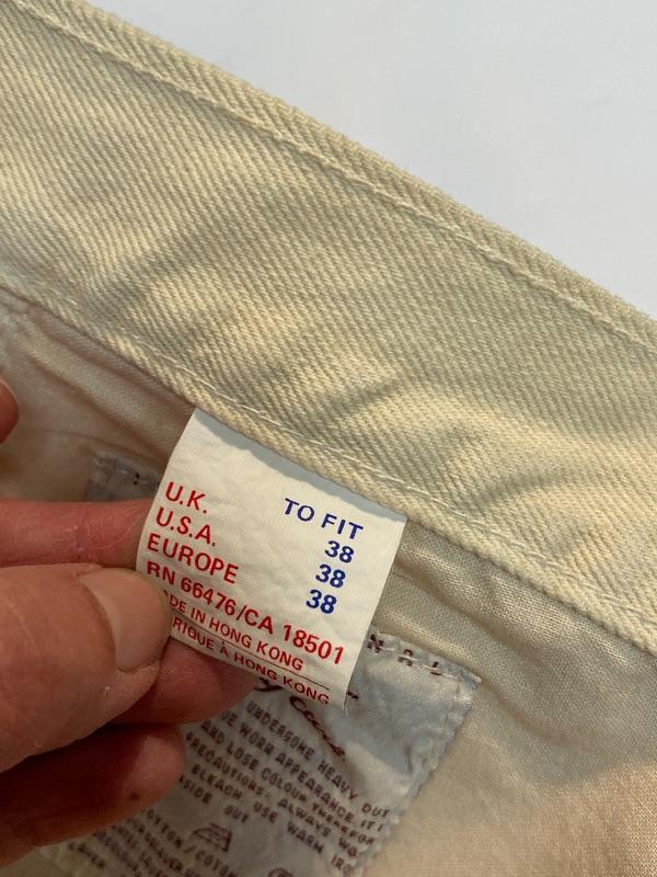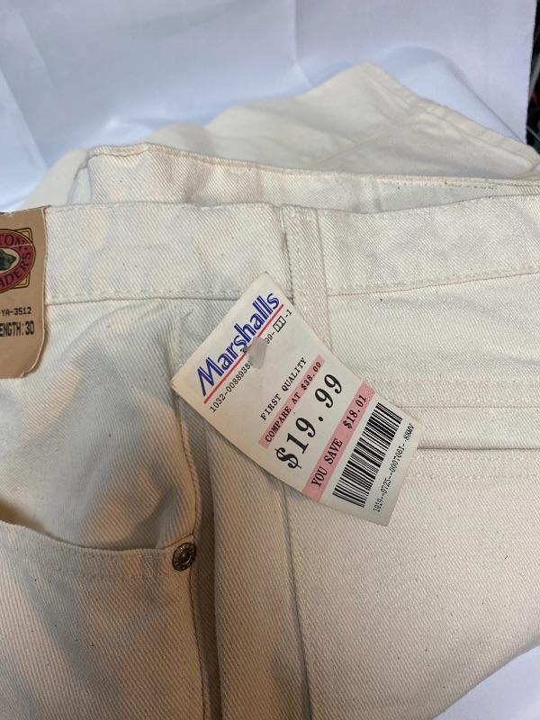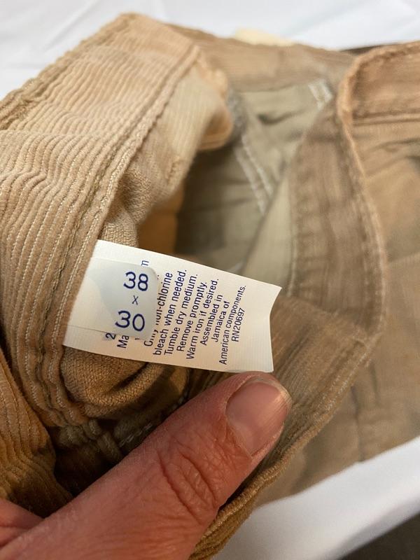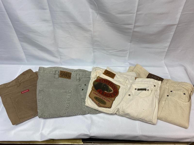 Lot of 4 pairs of men's pants. Good condition, one pair with tags. Light colored denim and corduroy pants. Size 38w, 30" inseam.