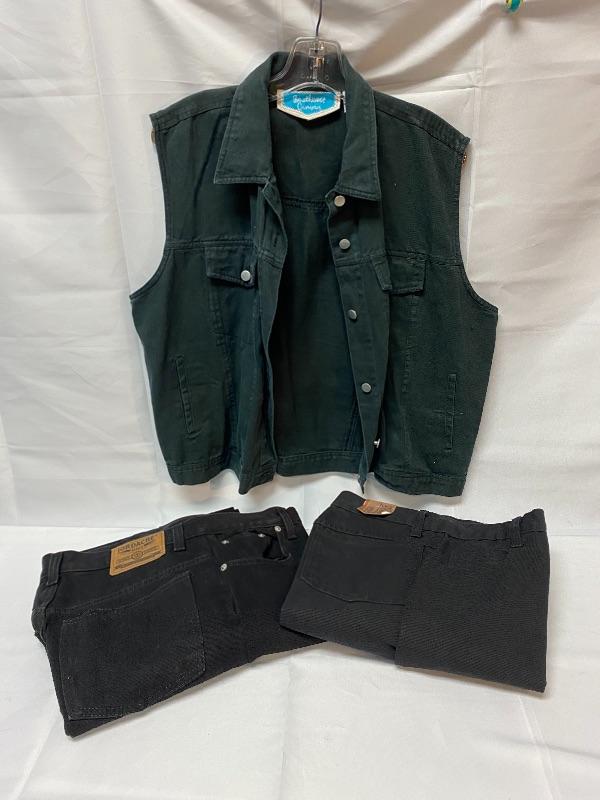 Women's Black Denim Lot Vest & Jeans Size Large 11/12 13/14