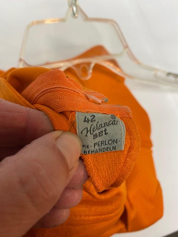 Vintage short sleeve women's blouse. Pumpkin orange with a textured look. Zipper back. Size 42 which is a US small. A little wrinkled but good condition.
