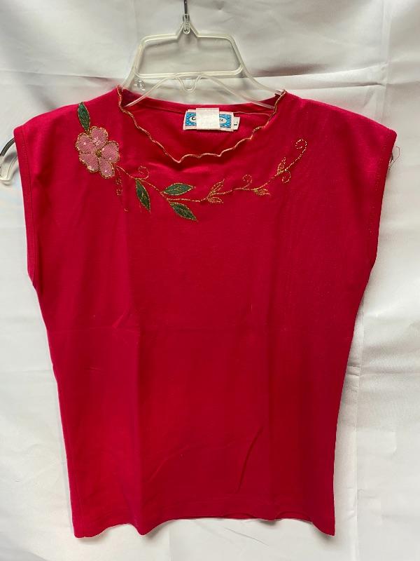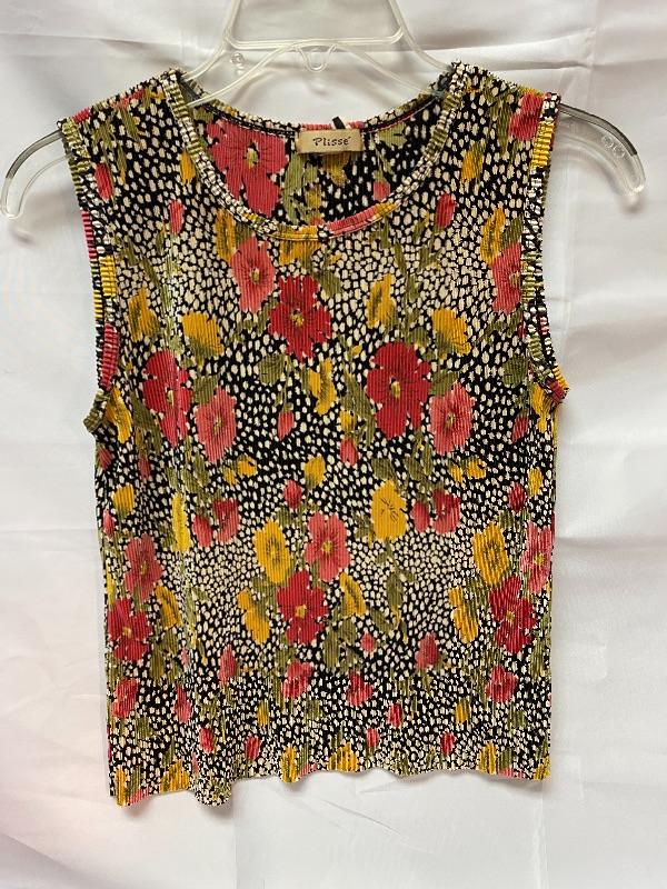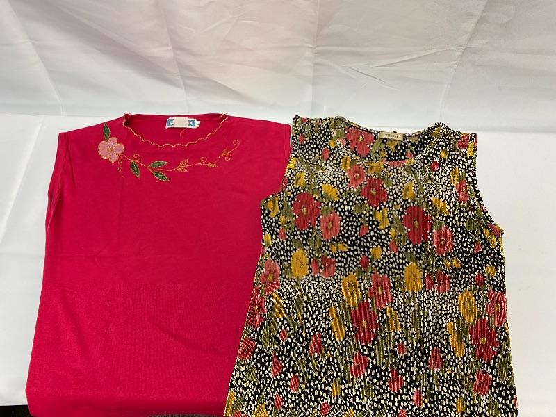 Pair of women's sleeveless tops. Great tank tops, wear alone or under another blouse. One is a size large, the other may be a medium, but has some stretch. Good condition.