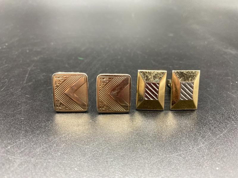 Two pairs of gold tone cuff links. Good vintage condition. Unbranded.