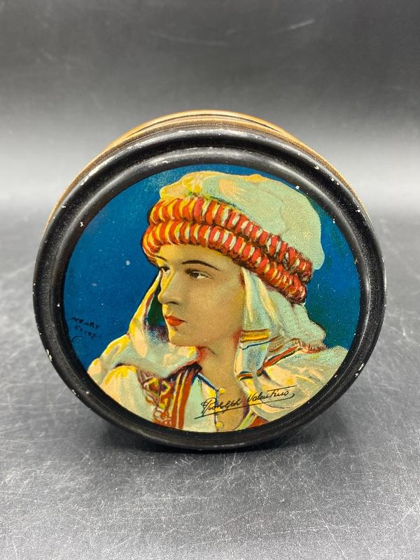 Vintage Round Rudolph Valentino The Son of the Sheik Tin