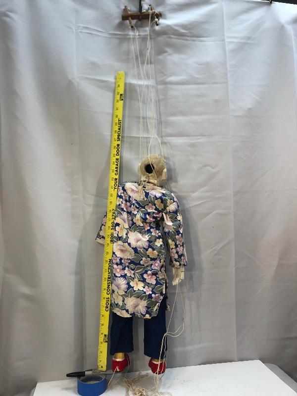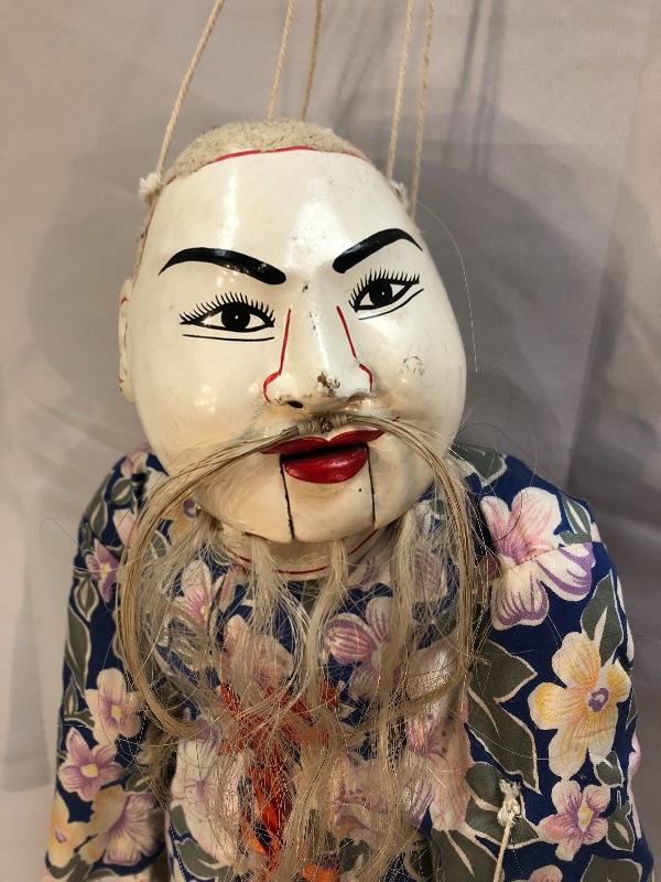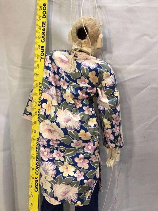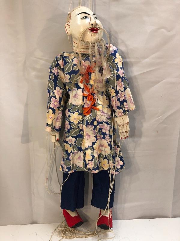 Vintage Asian marionette string puppet. Large size about 24". Ventriloquist mouth. Displays great.