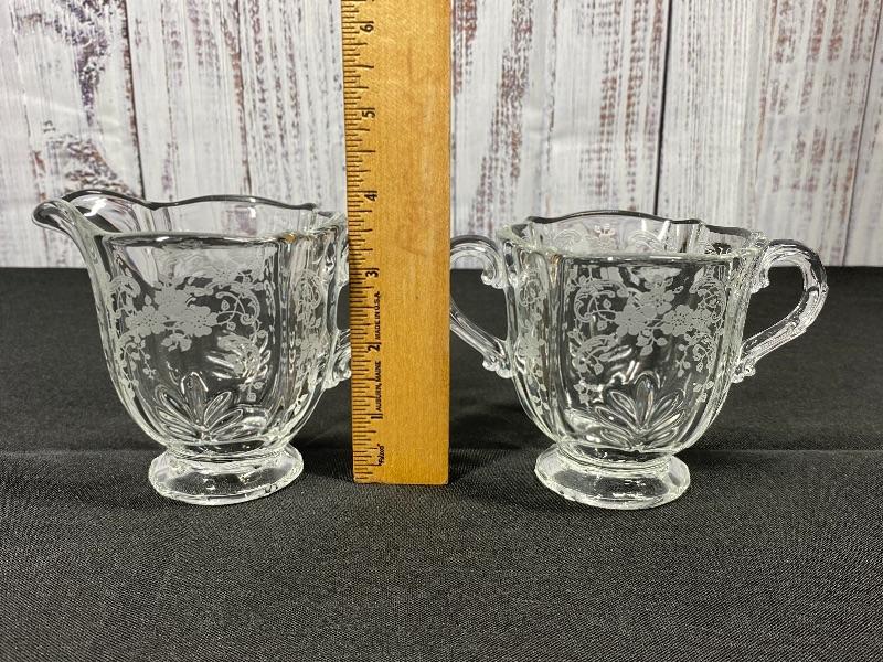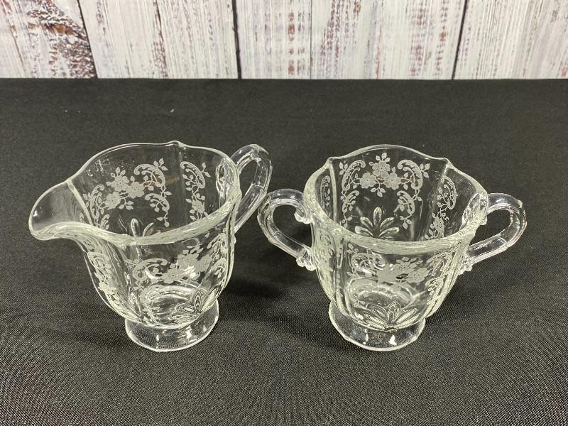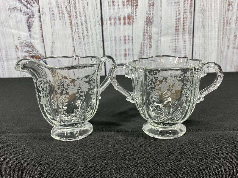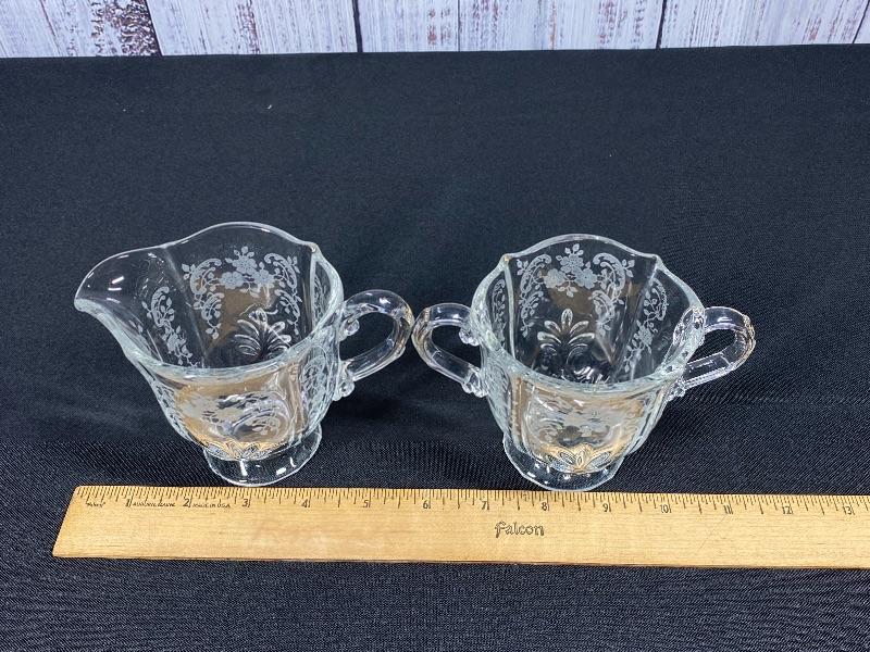 Vintage Fostoria Etched Frosted Floral Pattern Cream & Sugar Set