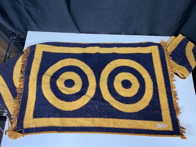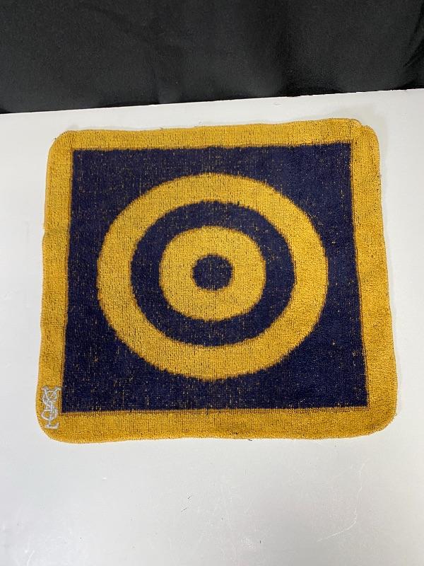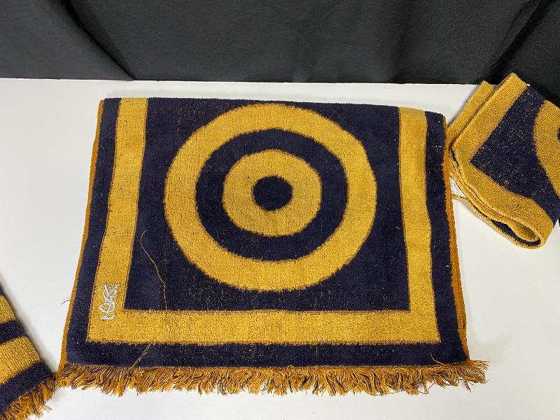 Vintage Yves Saint Laurent & Fieldcrest towels. Black and gold retro bullseye pattern. YSL monogram in the corner. In great vintage condition, no holes or spots, very little wear. #022-0480