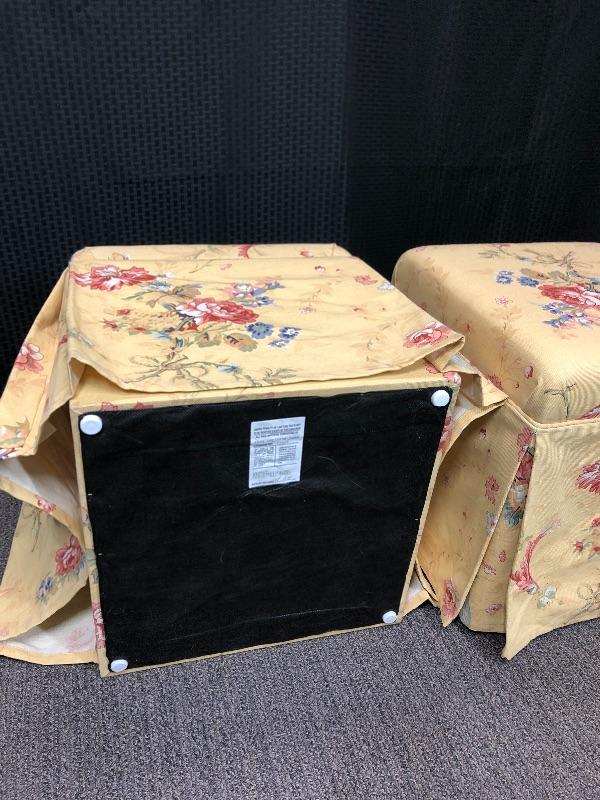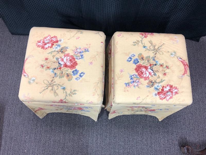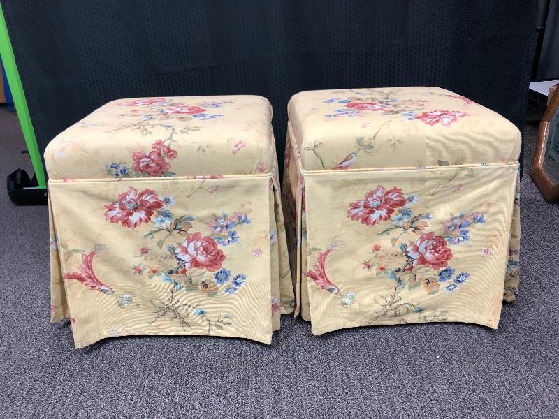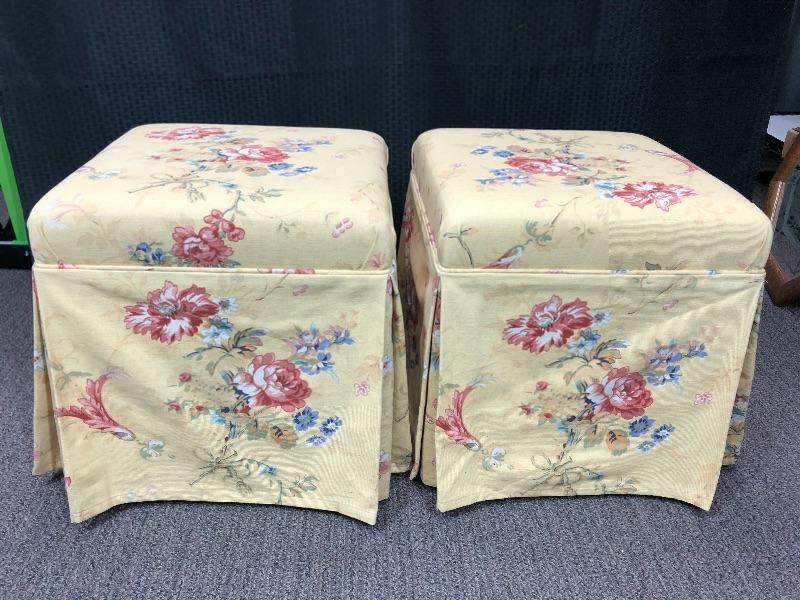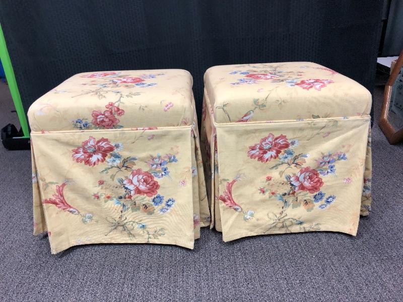 Pair of Yellow Floral Padded Ottomans Stools Seats