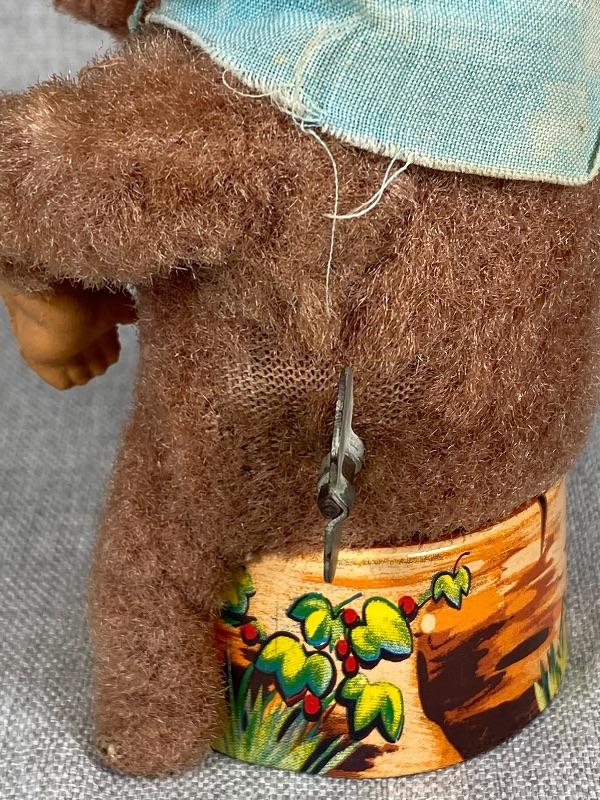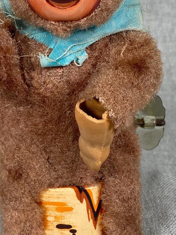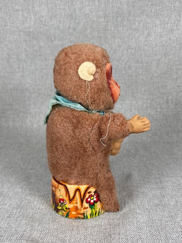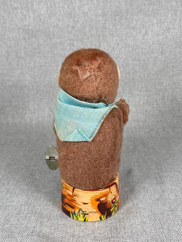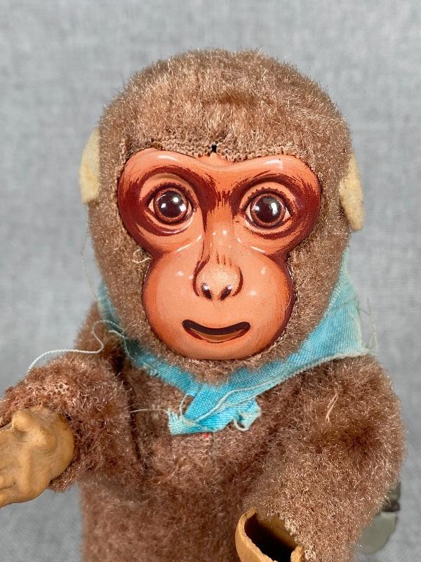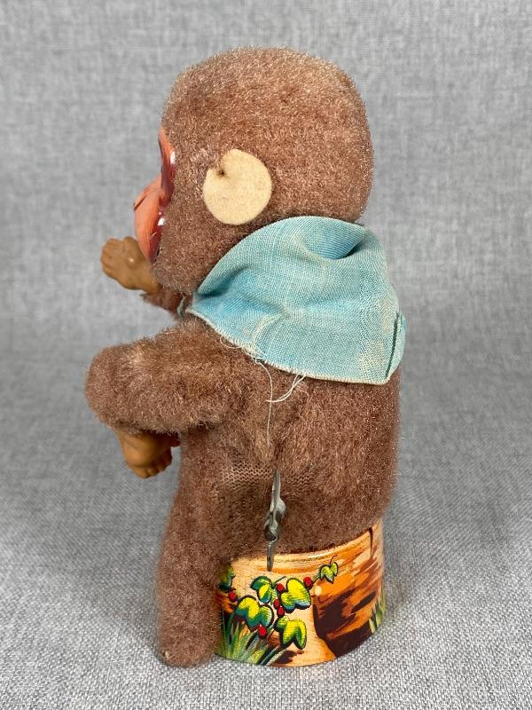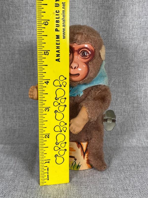 Vintage Mechanical Fuzzy Monkey Litho Tin Toy Japan