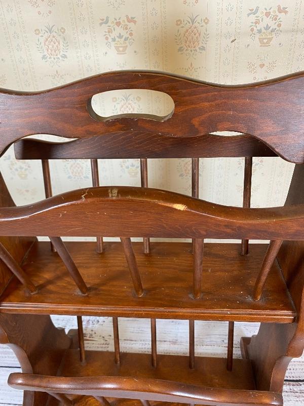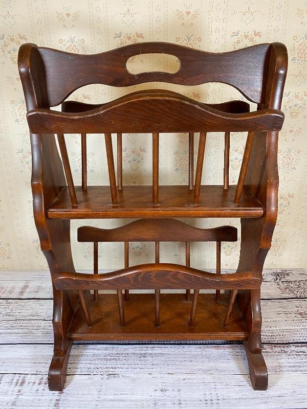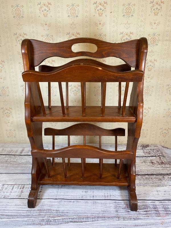 Traditional Magazine Rack, wood, double deck, Americana, fits in small space