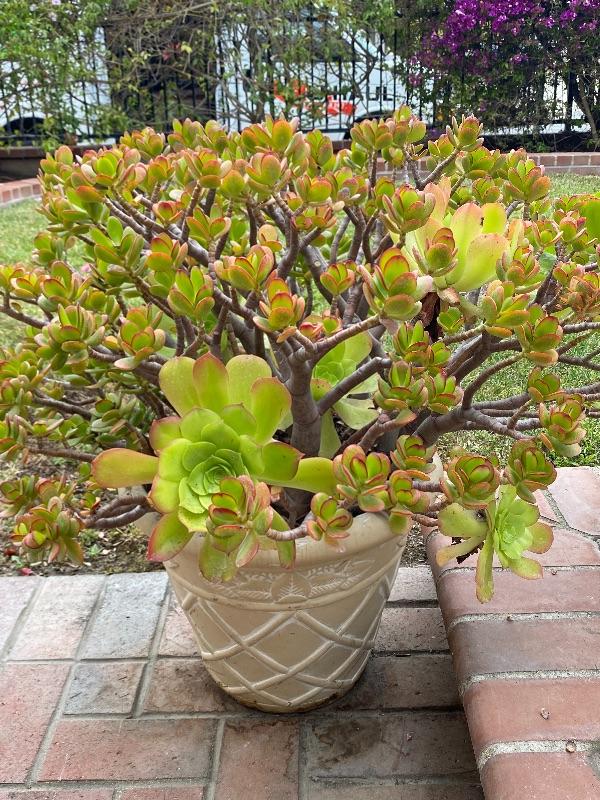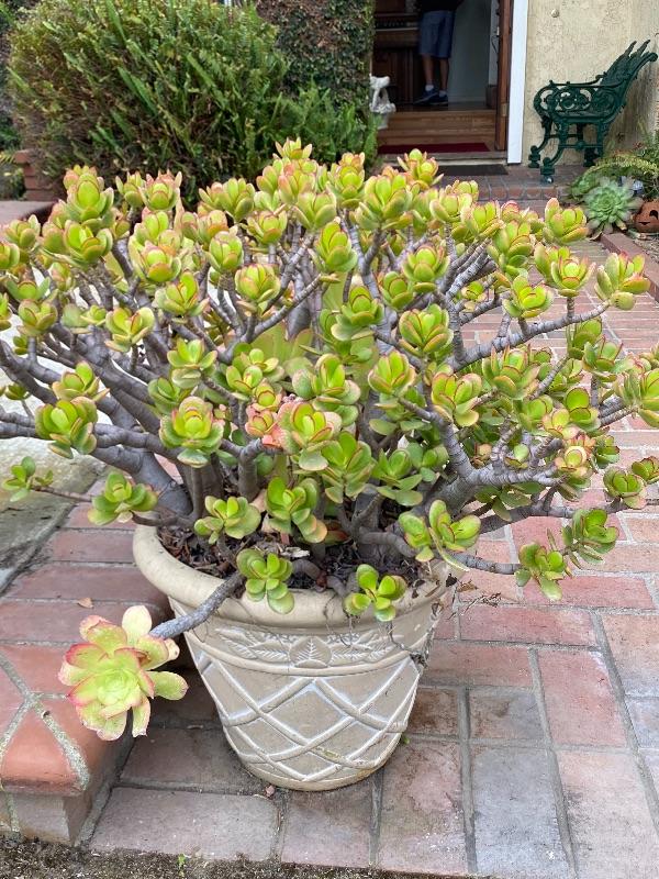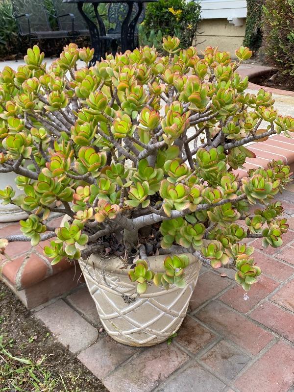 Potted Jade Tree. In a cement pot. Stands about 3'.