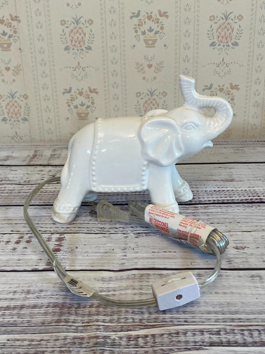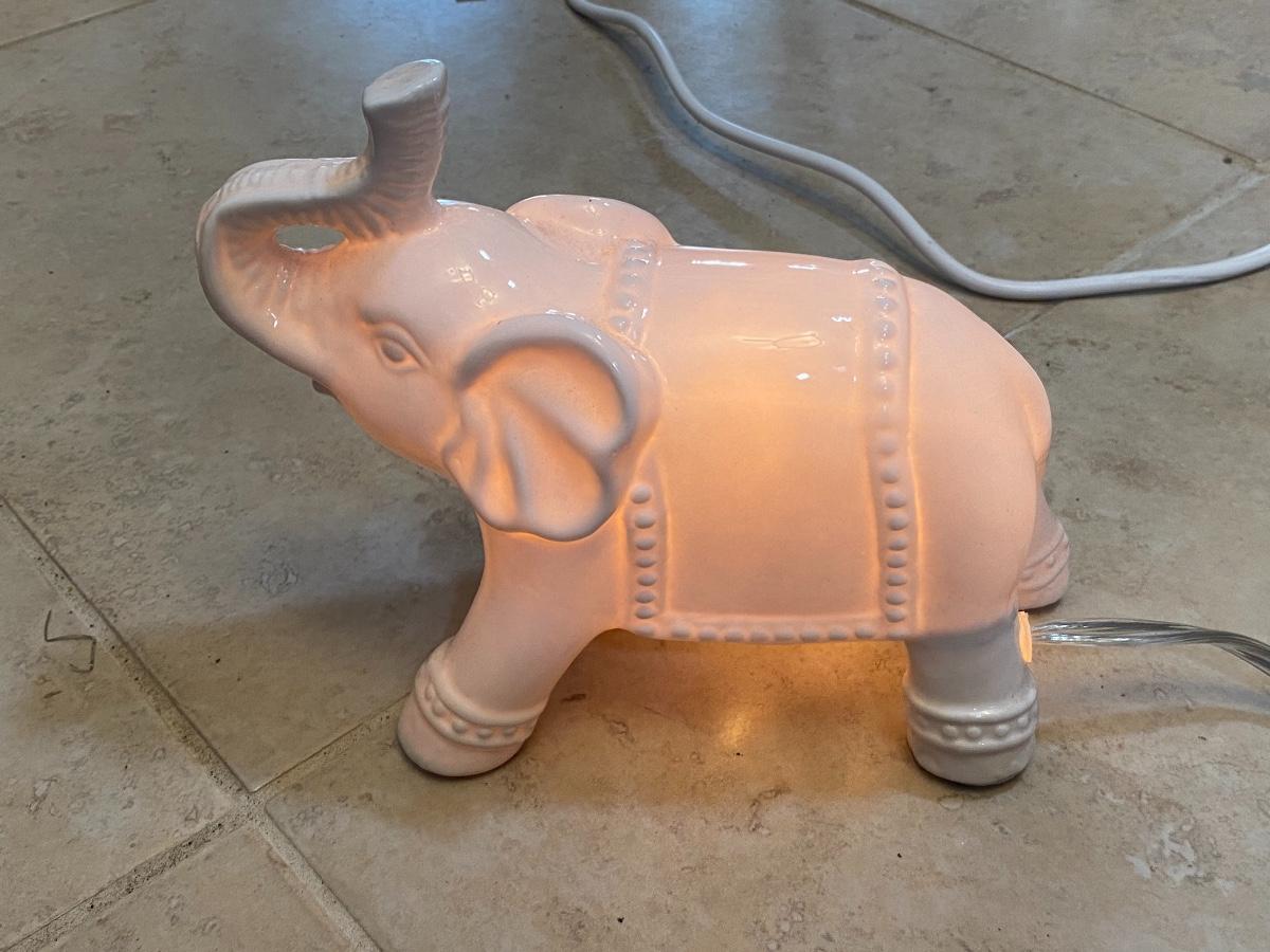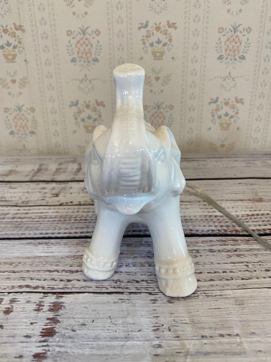 White Ceramic Elephant Table Lamp Night Light Decor Nightlight. In gently used condition. #030-2020