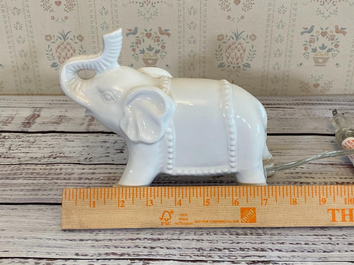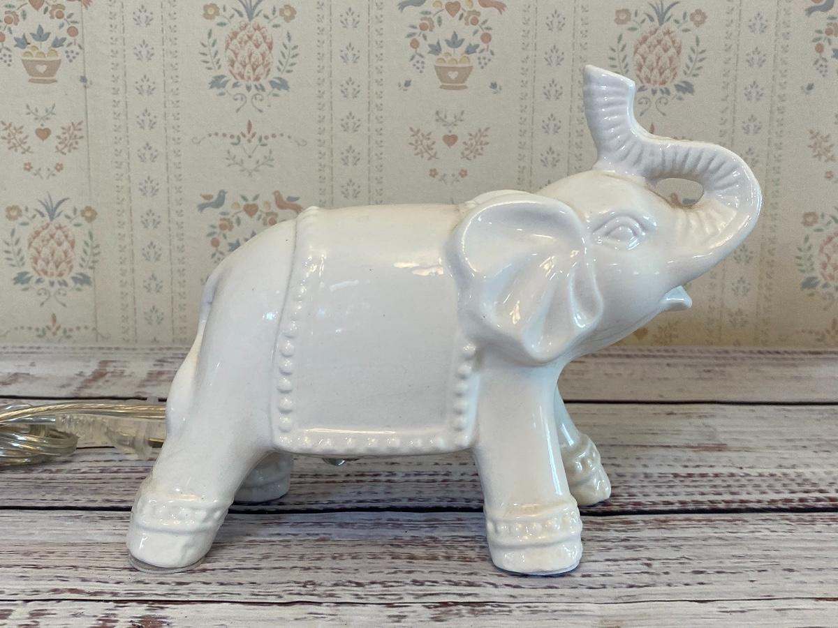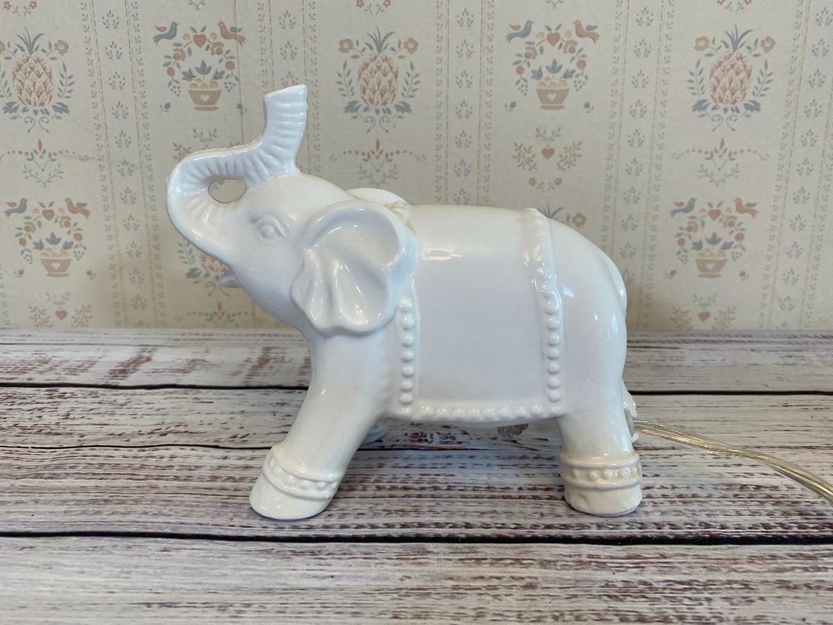 White Ceramic Elephant Table Lamp Night Light Decor Nightlight. In gently used condition. #030-2020
