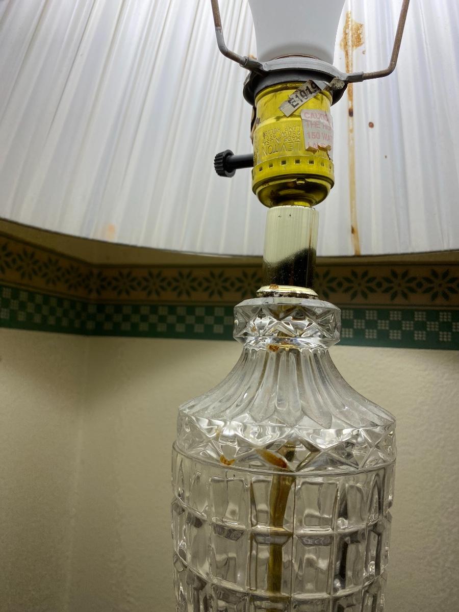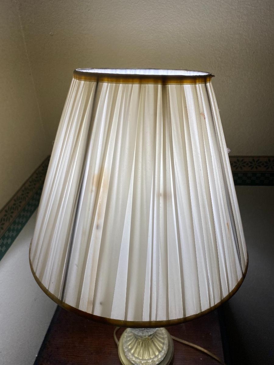 Base needs cleaning and shade too! But it works! Small size, great for bedside light.