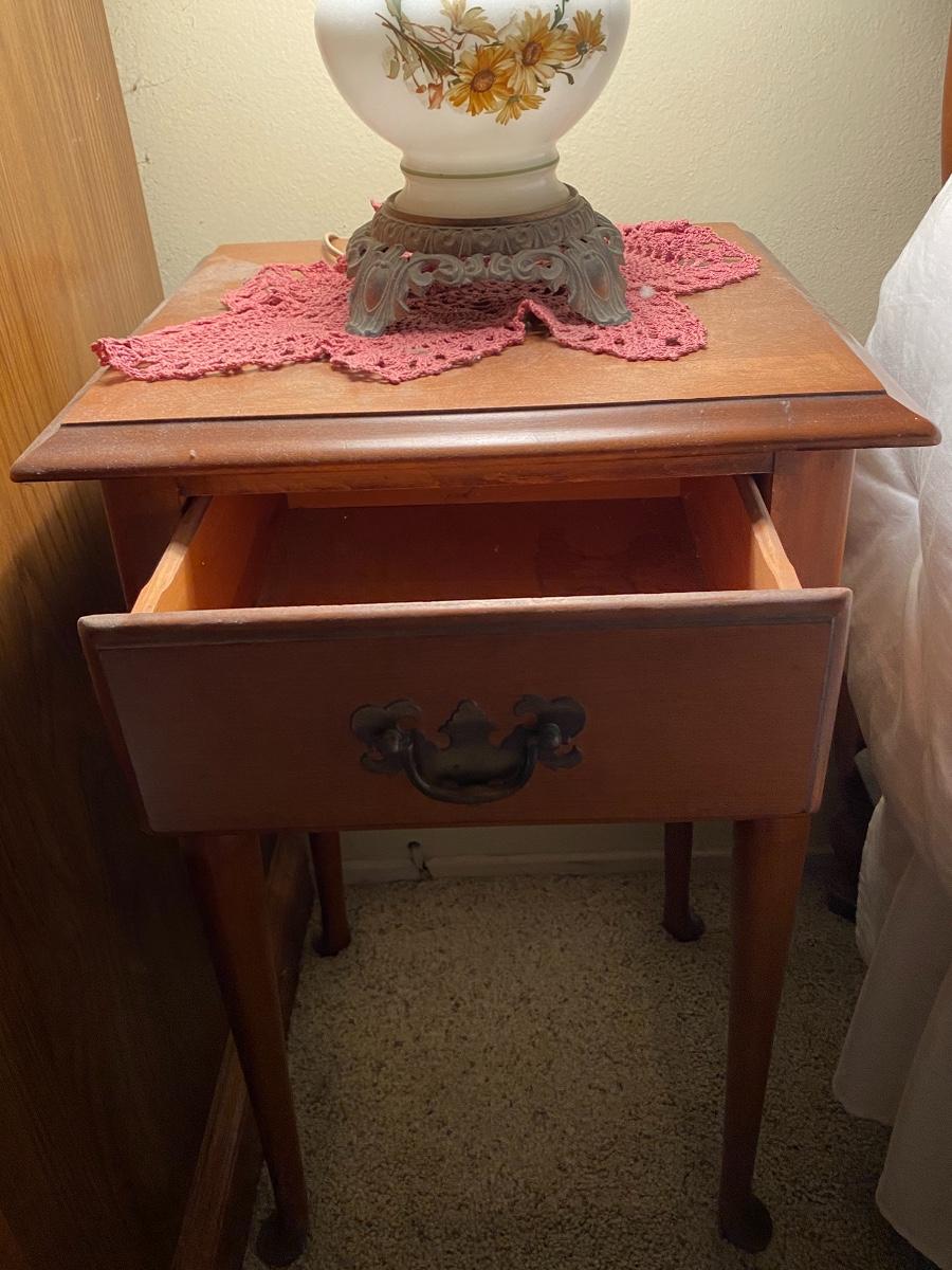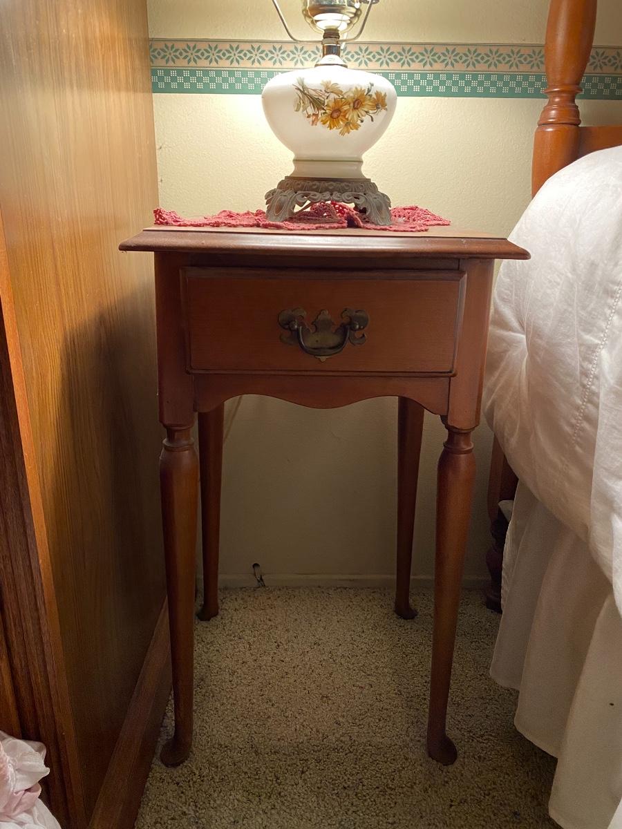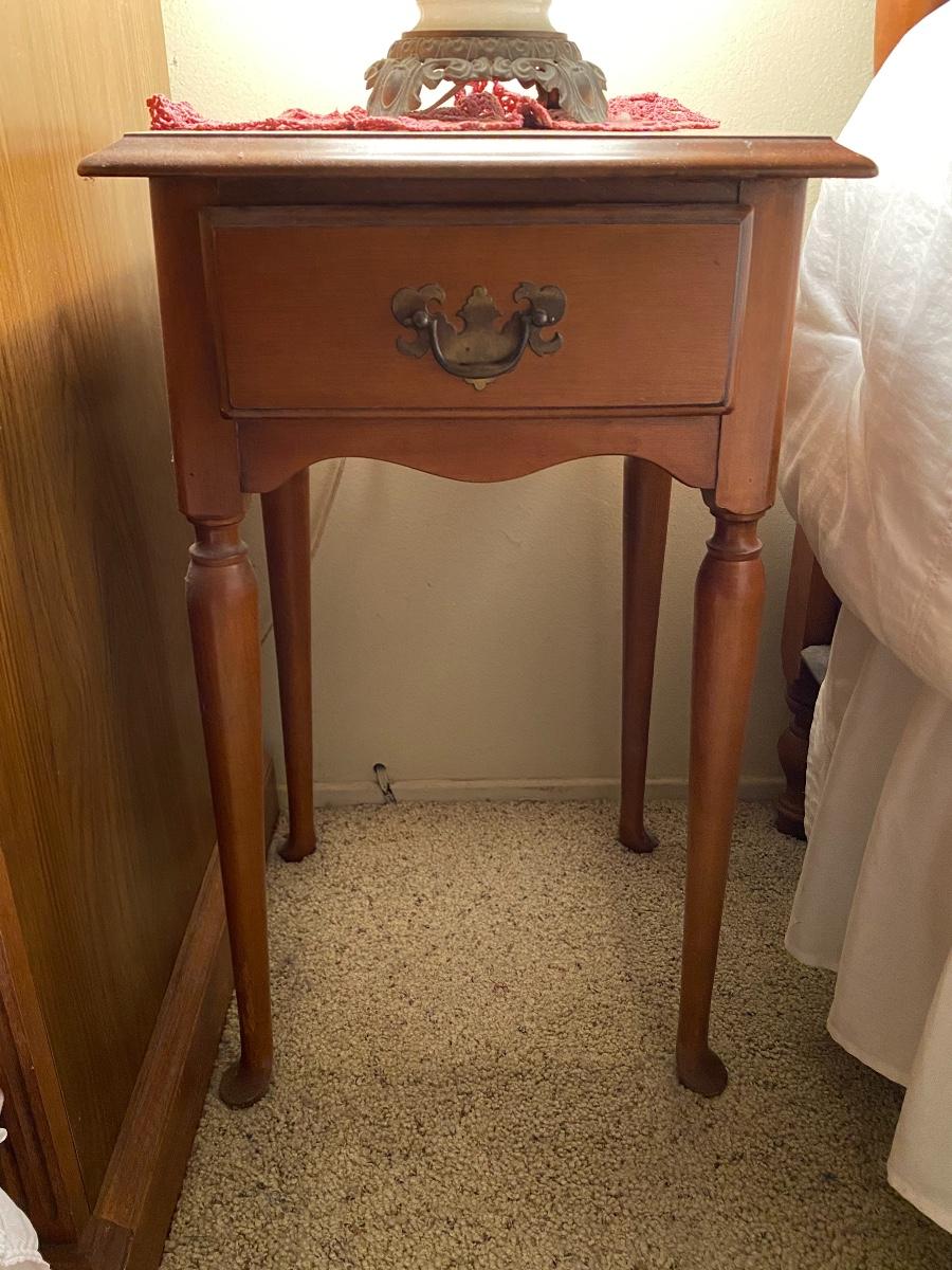 Nice wood table for bedside. Tall and skinny, perfect for tight spaces.