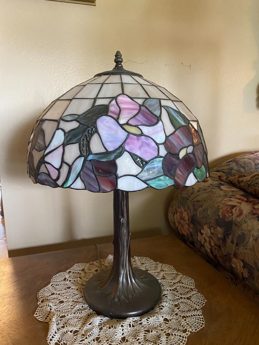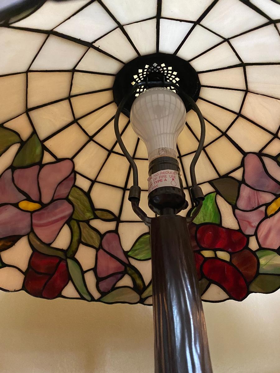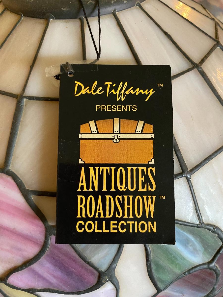 DALE TIFFANY Stained Glass Table Lamp red and purple flowers shown on Antiques Roadshow