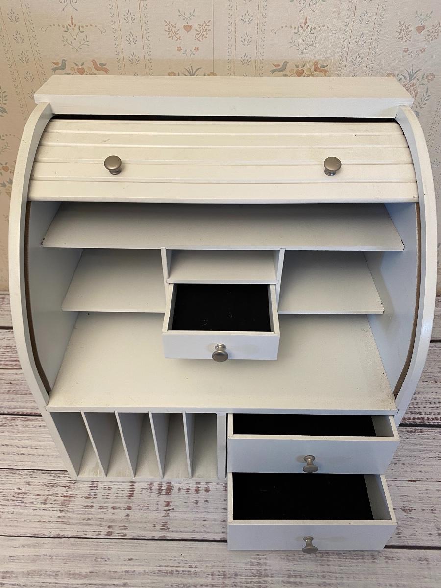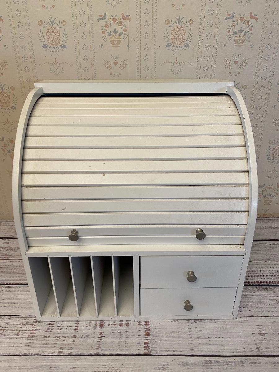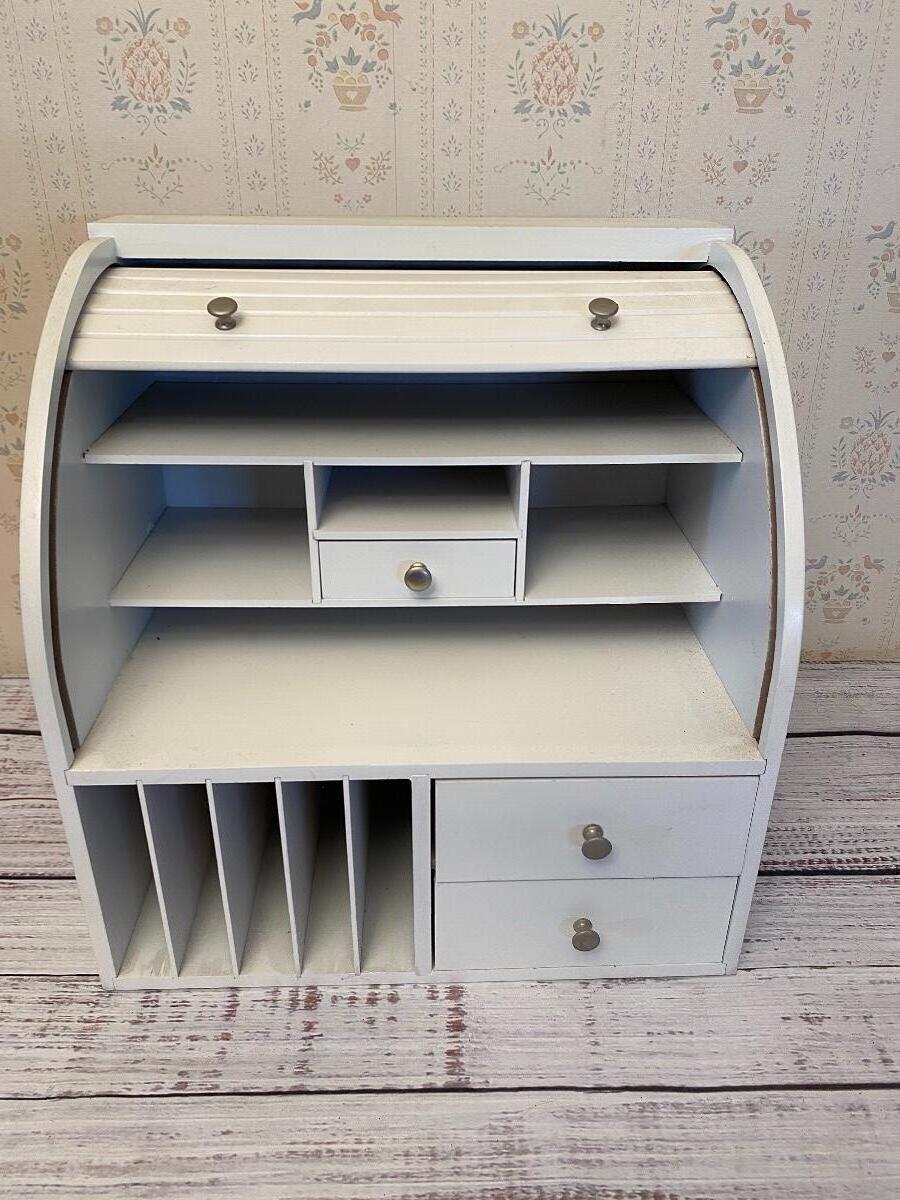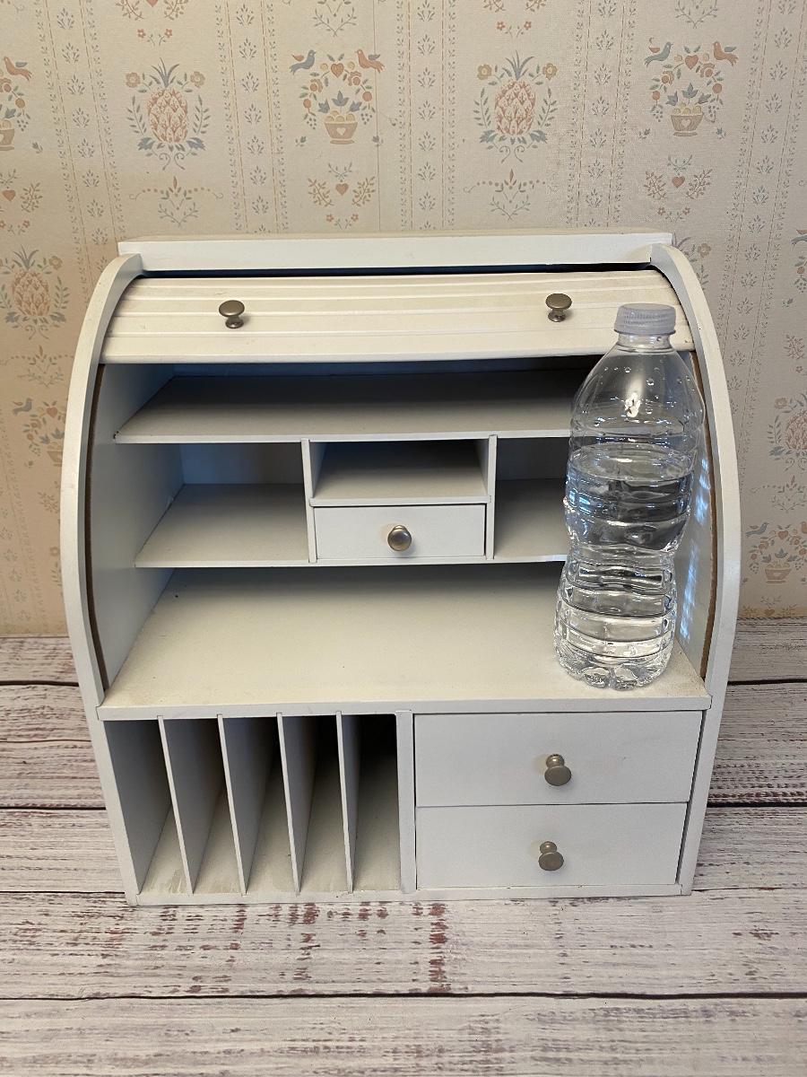 Small White Roll Top Desk Organizer Hutch