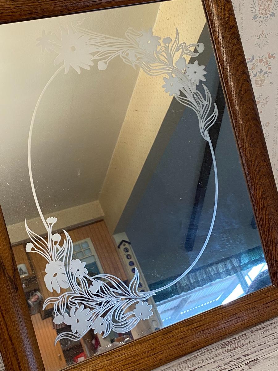 Vintage Retro Floral Frosted Etched Wall Mirror