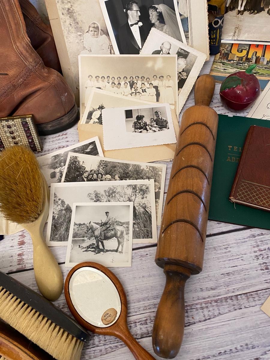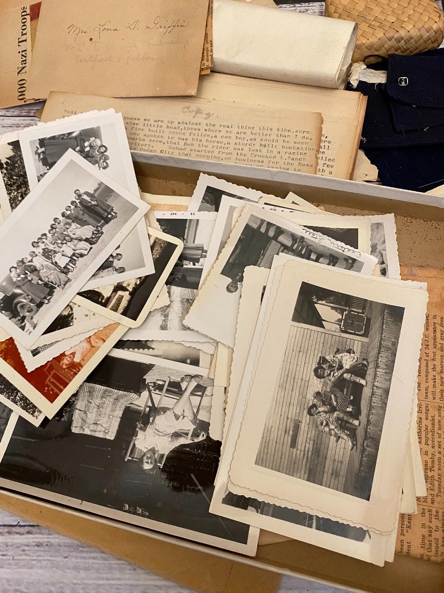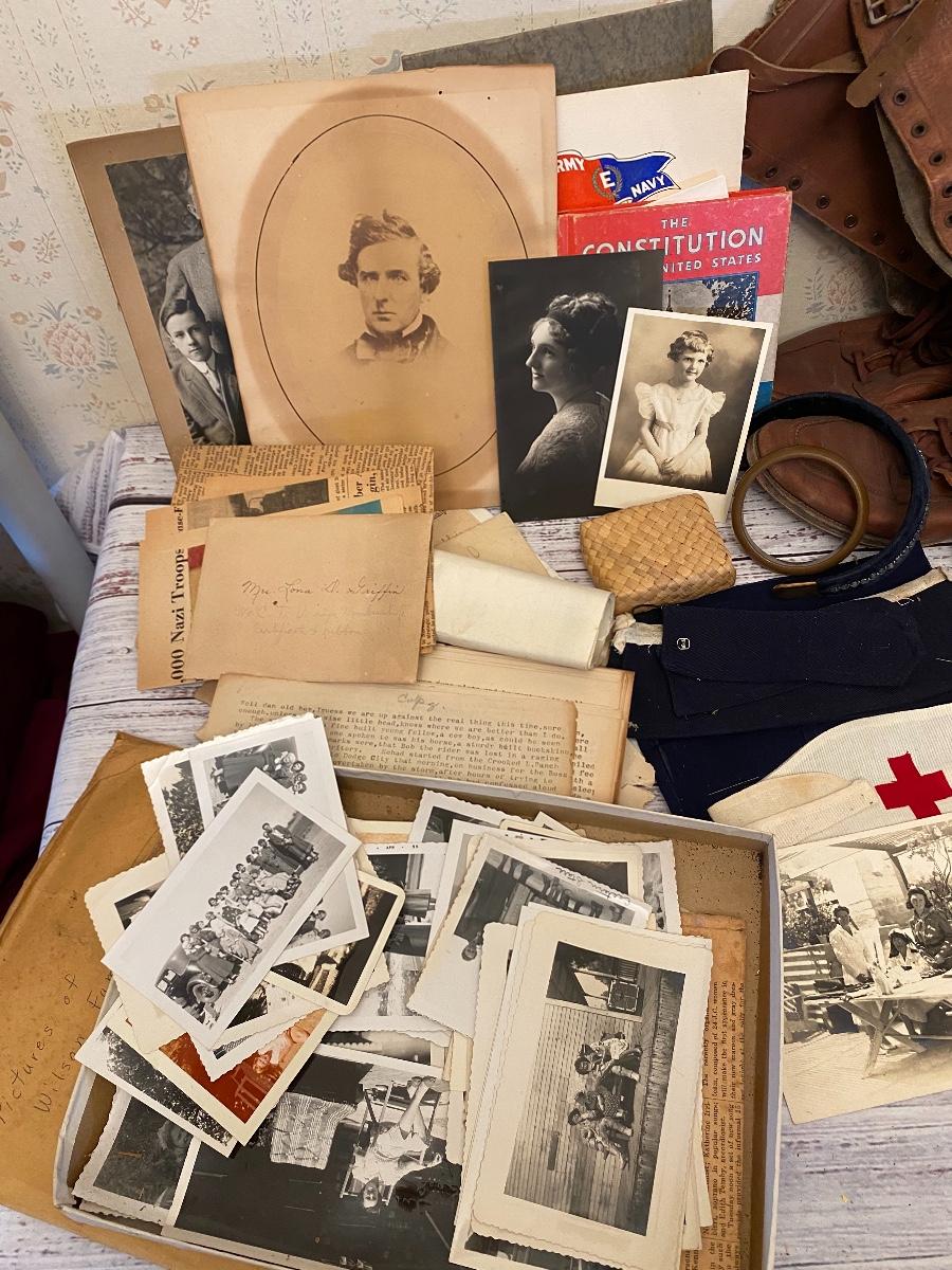 Great mixed lot of photos, ephemera, and personal items. Everything in photos is included in the lot. Most photos have some kind of info written on backs. All from same box. Dates from 1960s and back to Victorian era by look of photos.