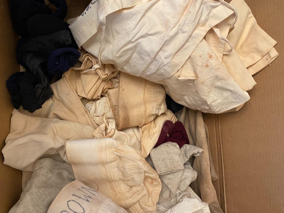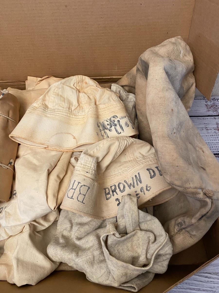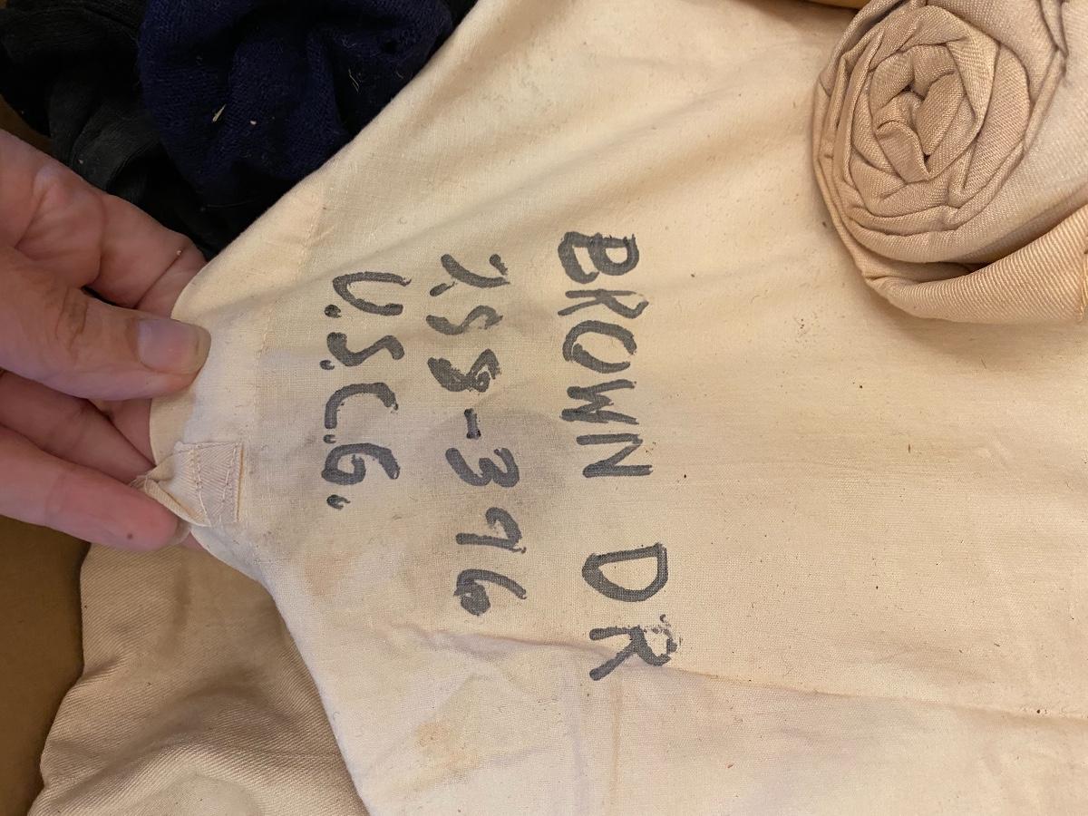 Misc pieces of vintage military linen? uniform? found in cloth duffle bag.
