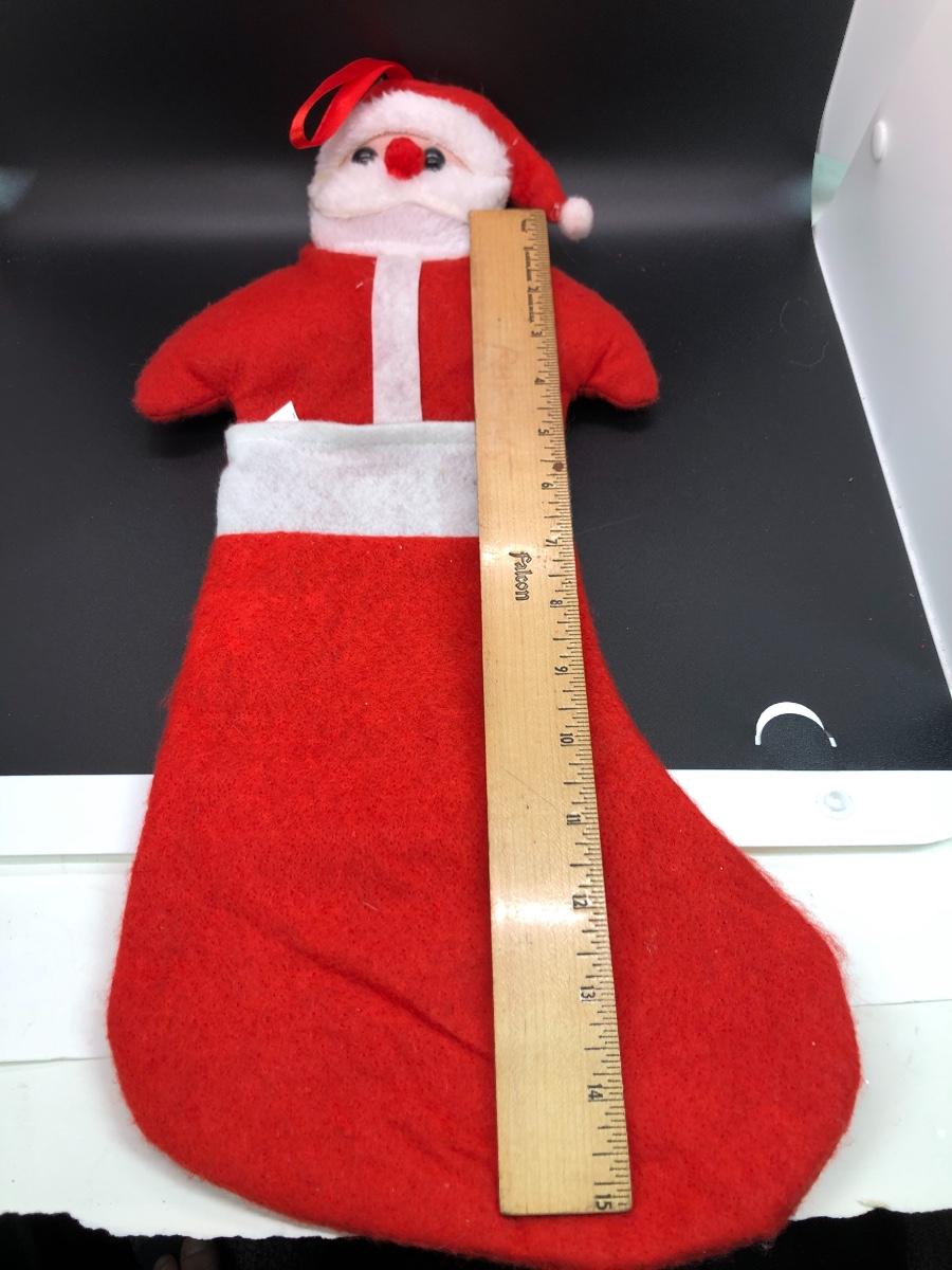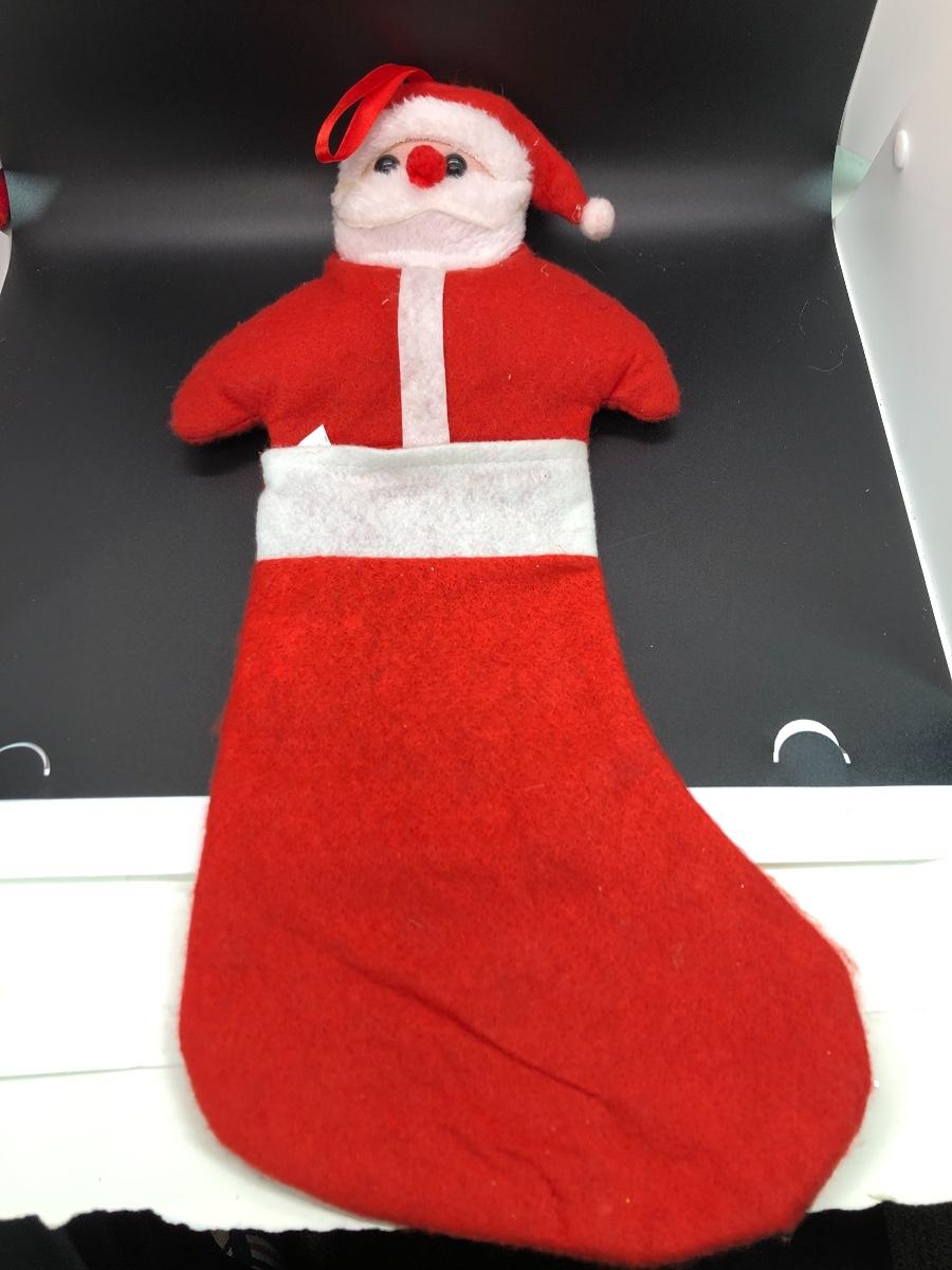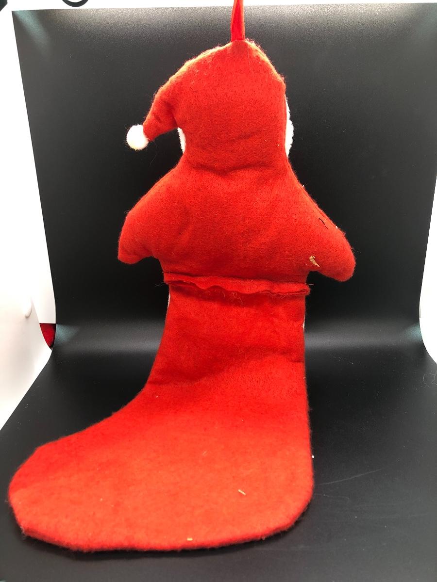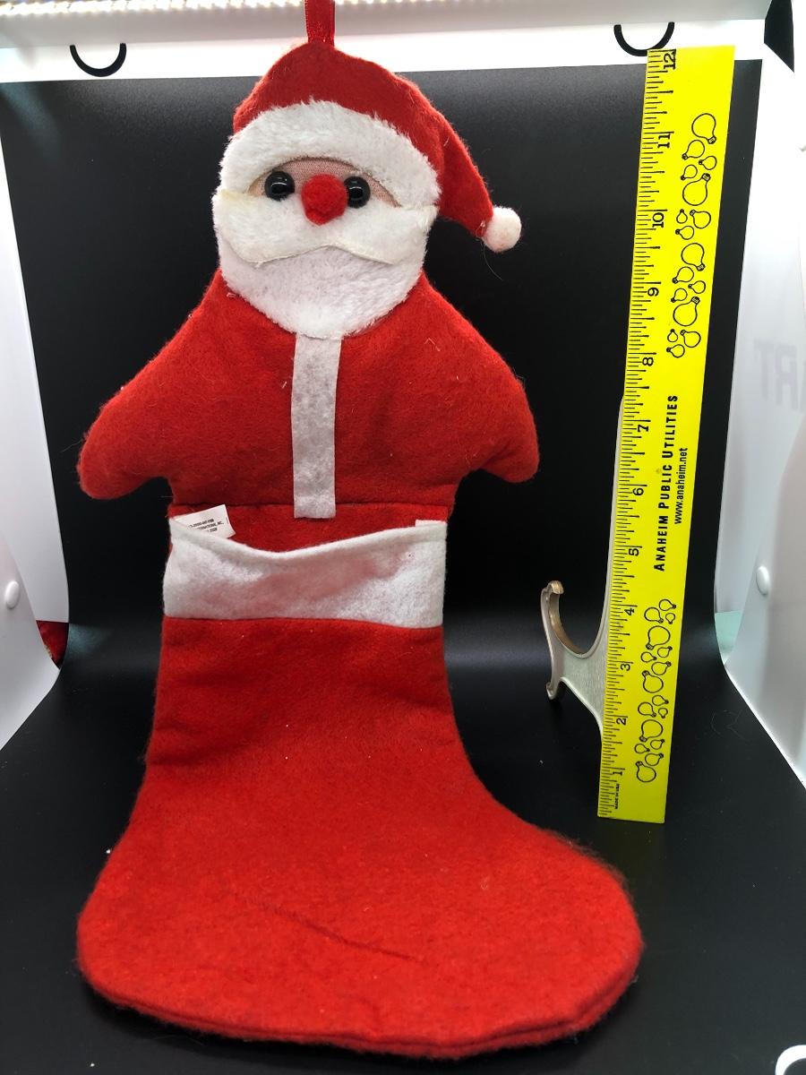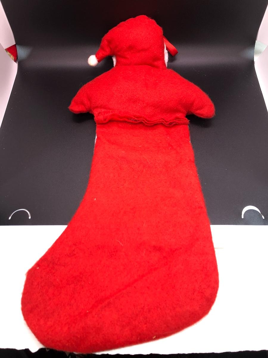 Christmas Stocking made to look like Santa is popping out the top. Loop for hanging. Approx. 18” long.