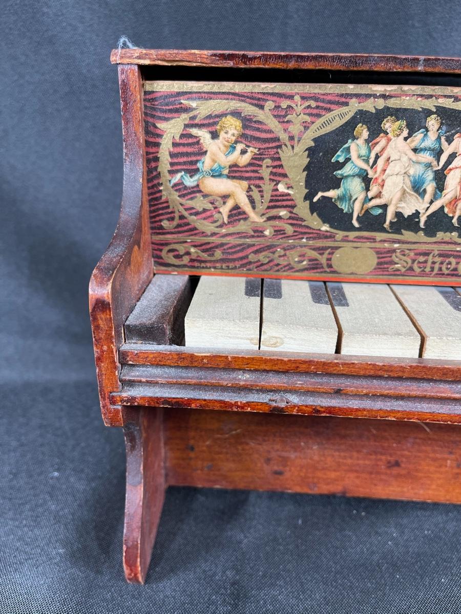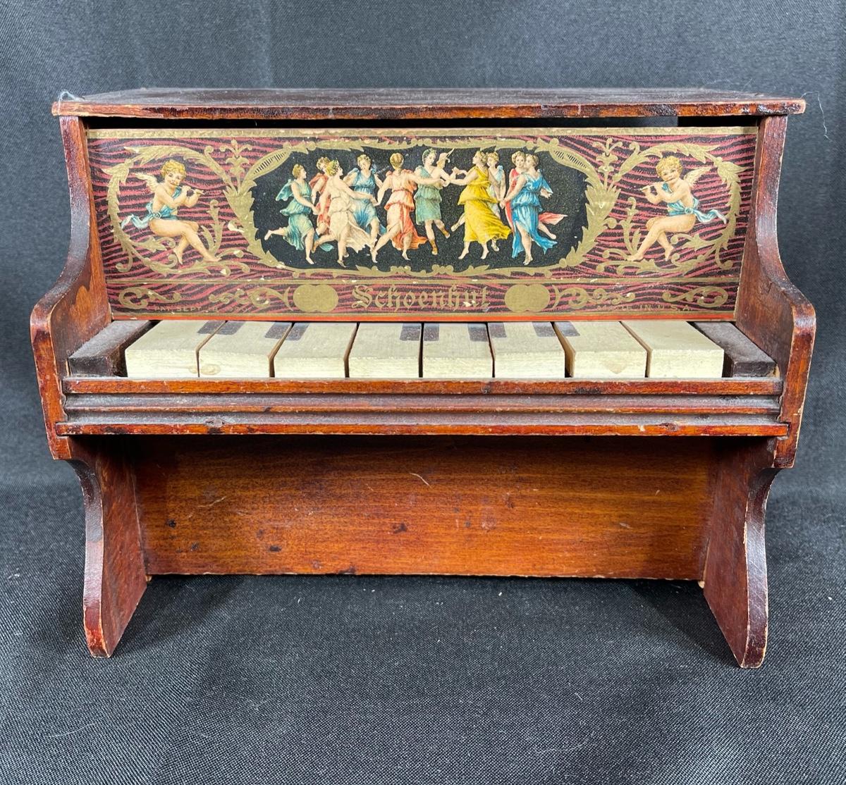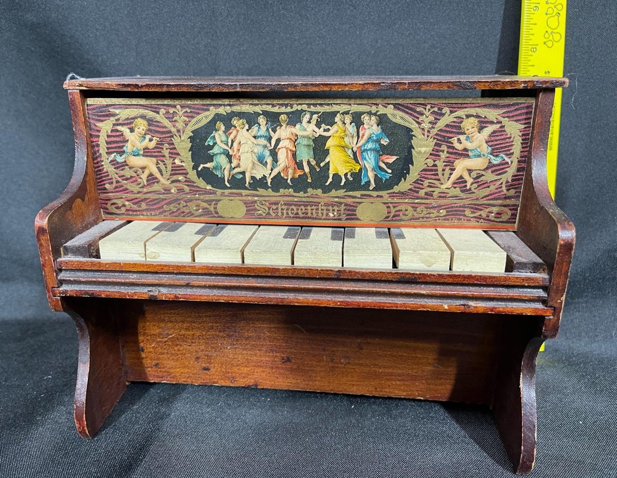 Vintage Schoenhut child size toy piano. Has some wear from age and use. Displays nicely.