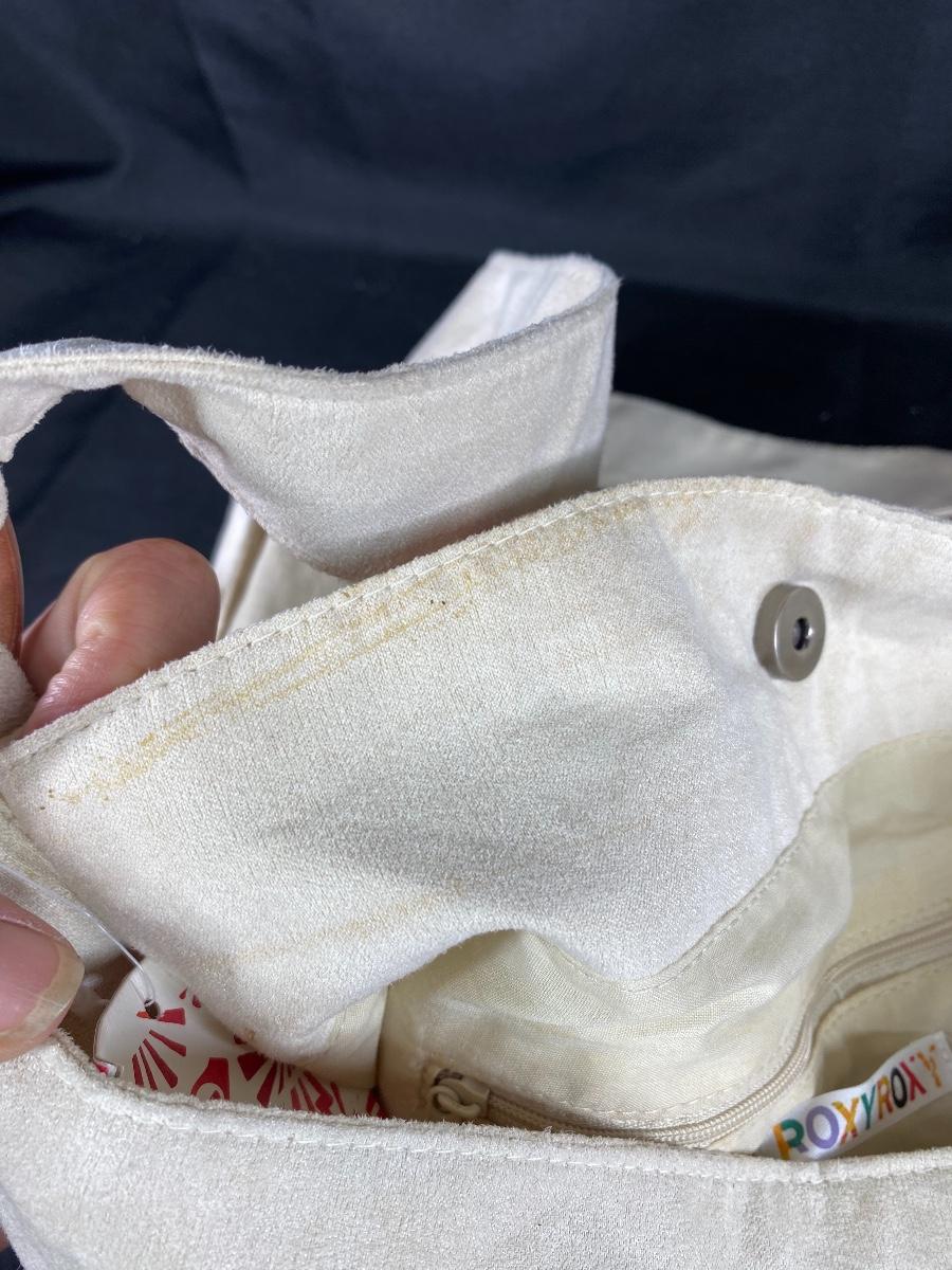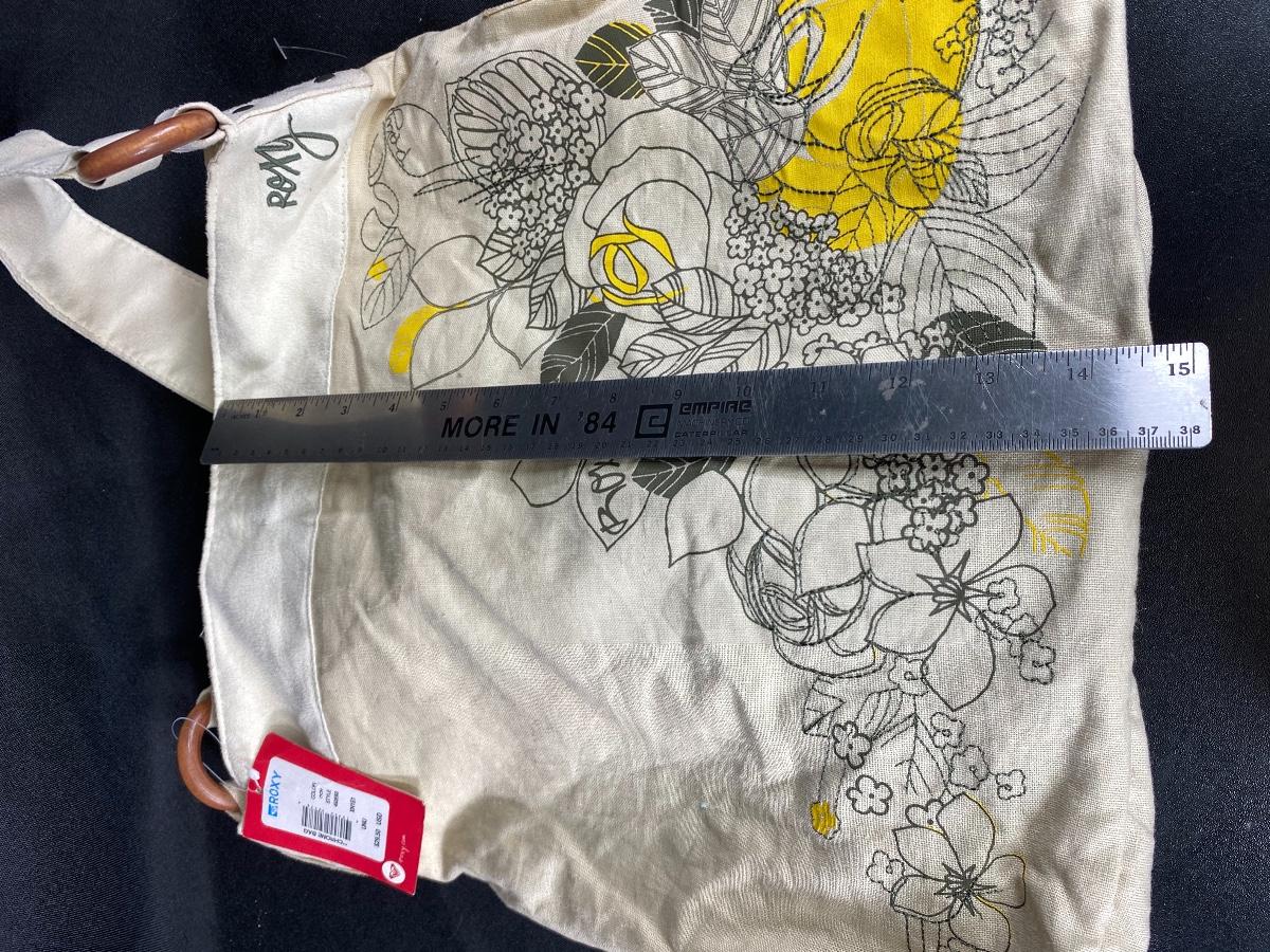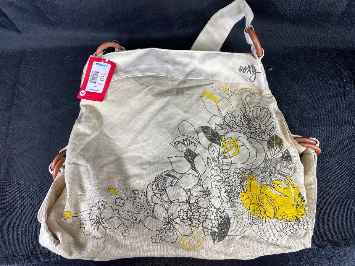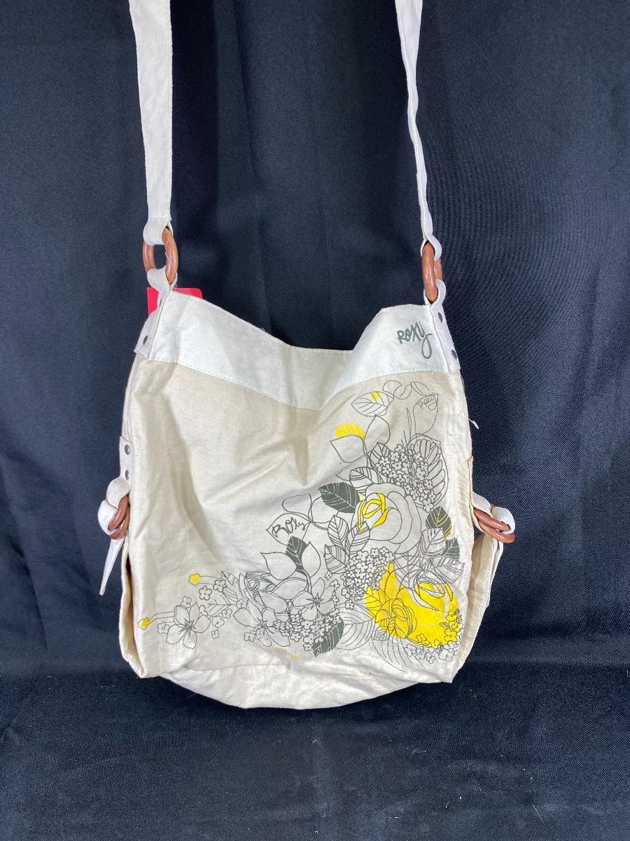 New with tags ROXY hobo bag. Light beige/ off white with a floral design. Does have a few smudges from being stored.