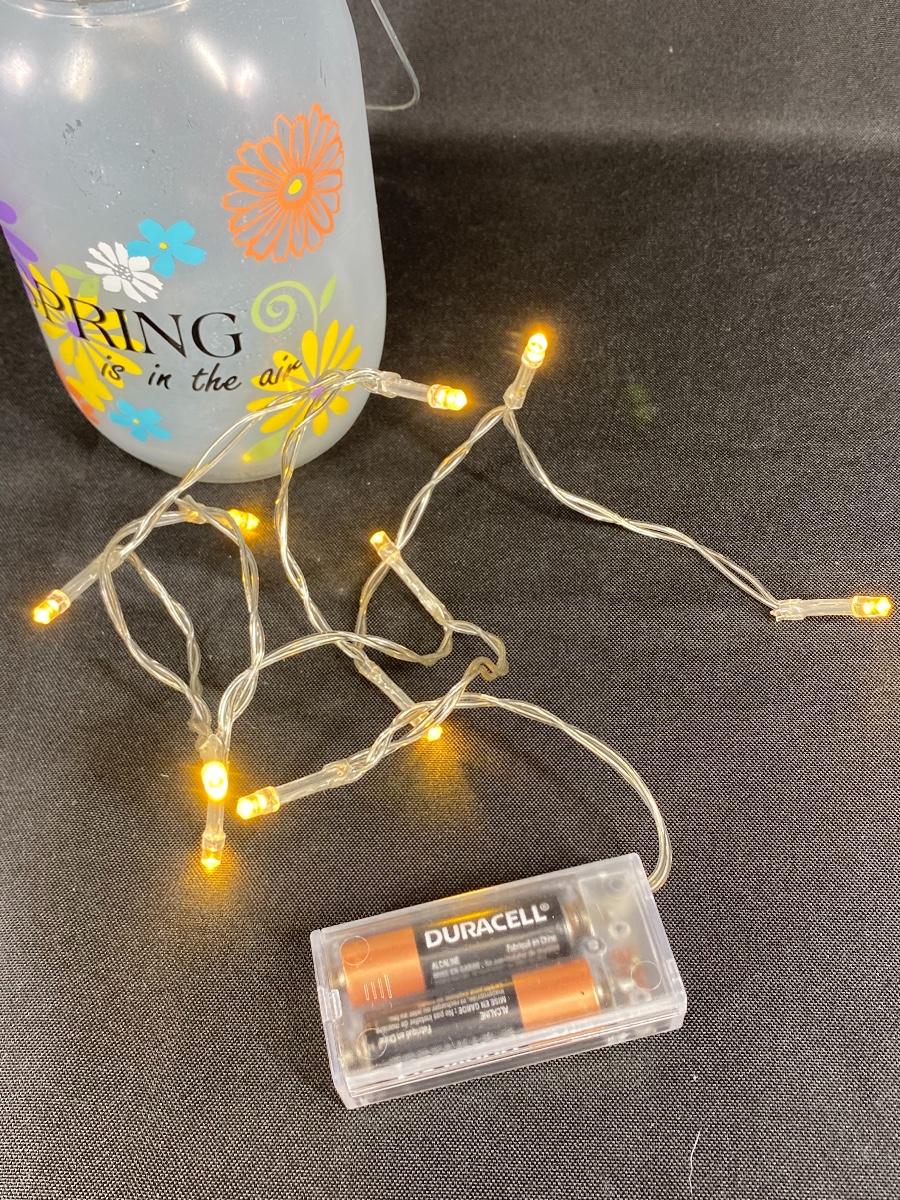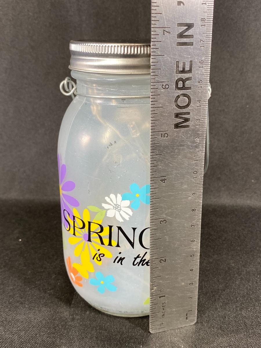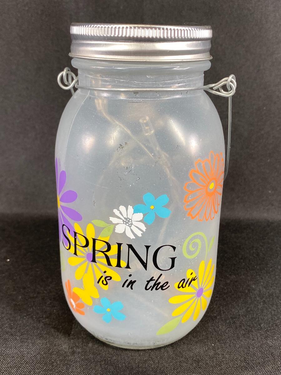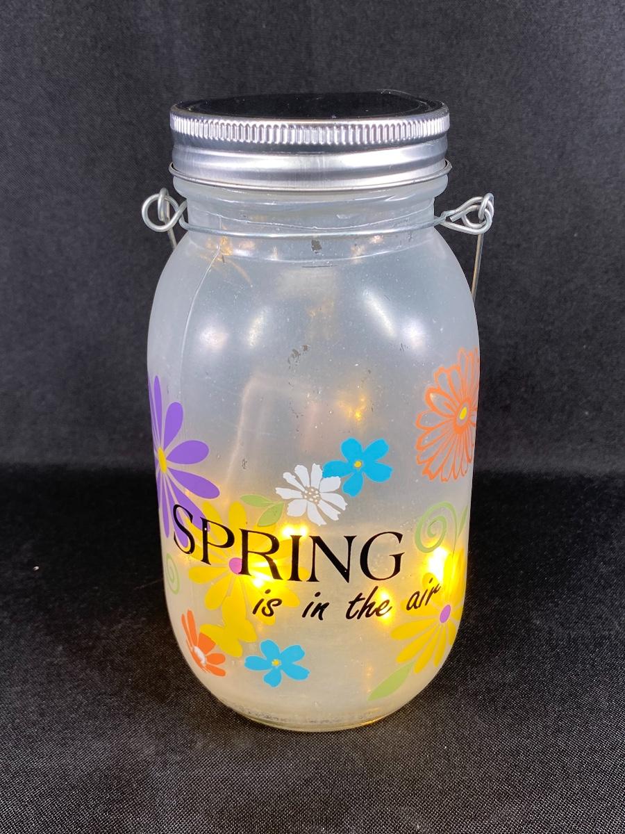 Spring is in the Air light up mason jar. Battery operated string lights inside, works!!