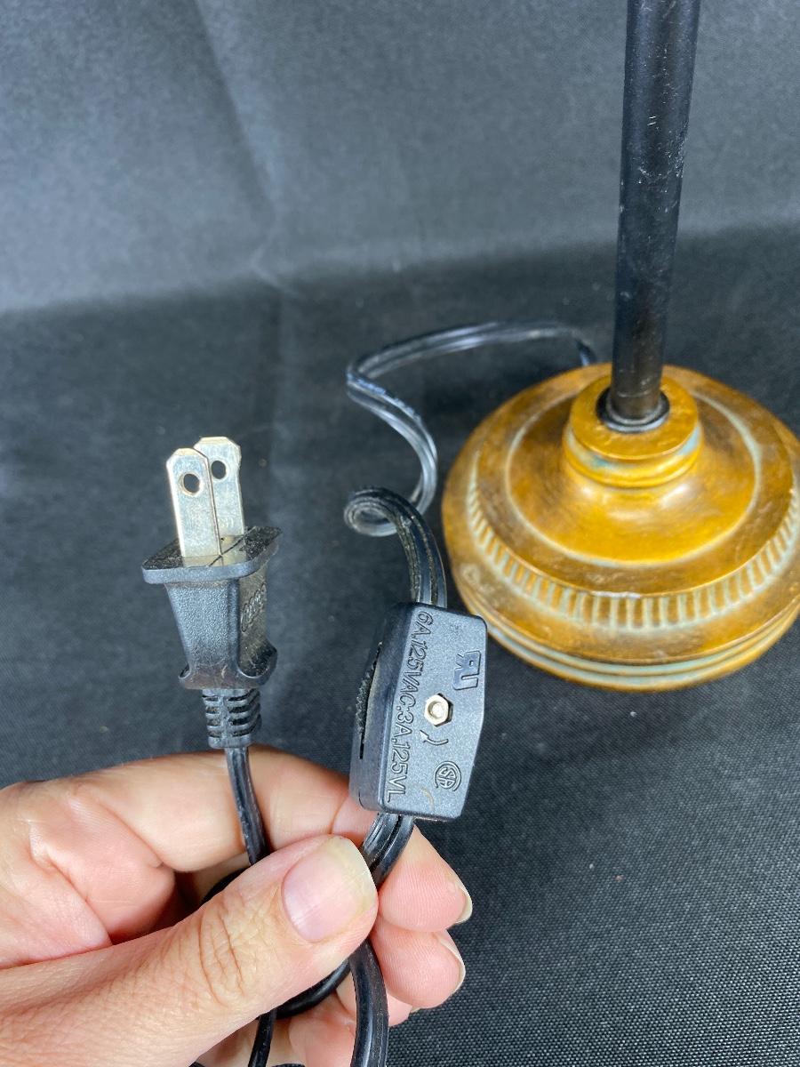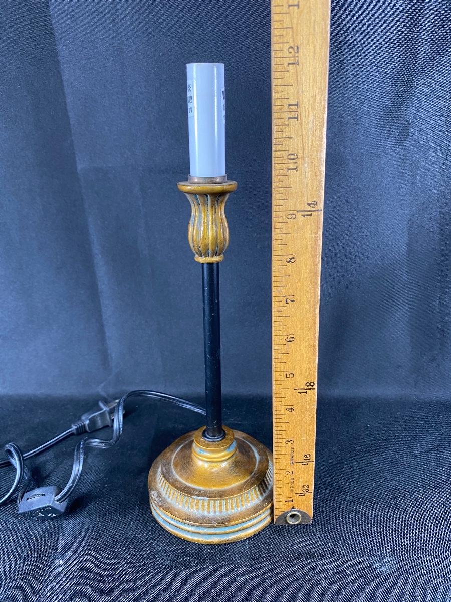 Small candlestick style table lamp. Great for small spaces. No shade. On/off switch on power cord. About 12".