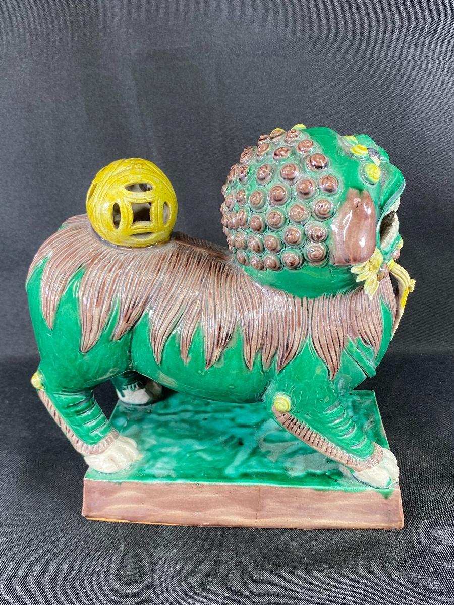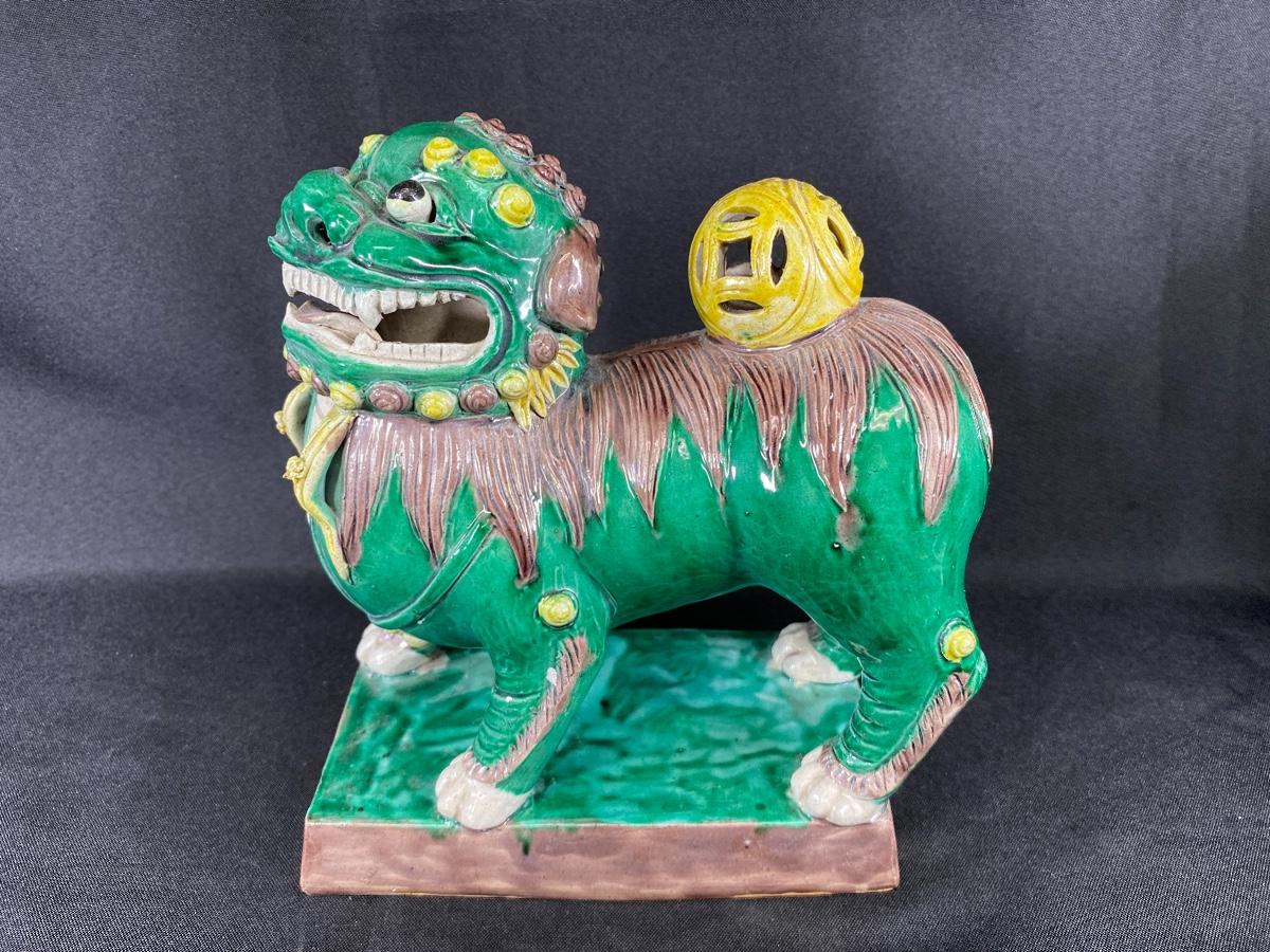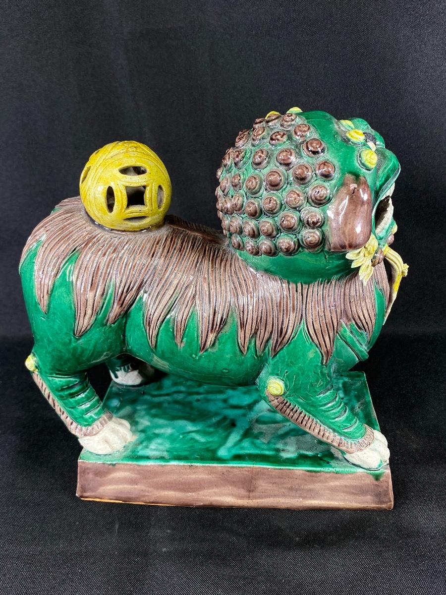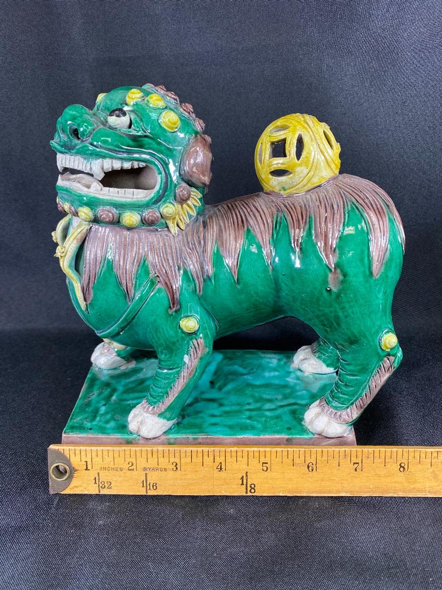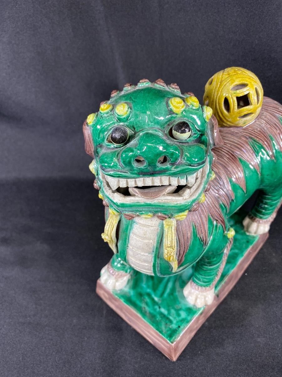 Green & Yellow Foo Dog Lion Dragon Figurine Statue Bookends