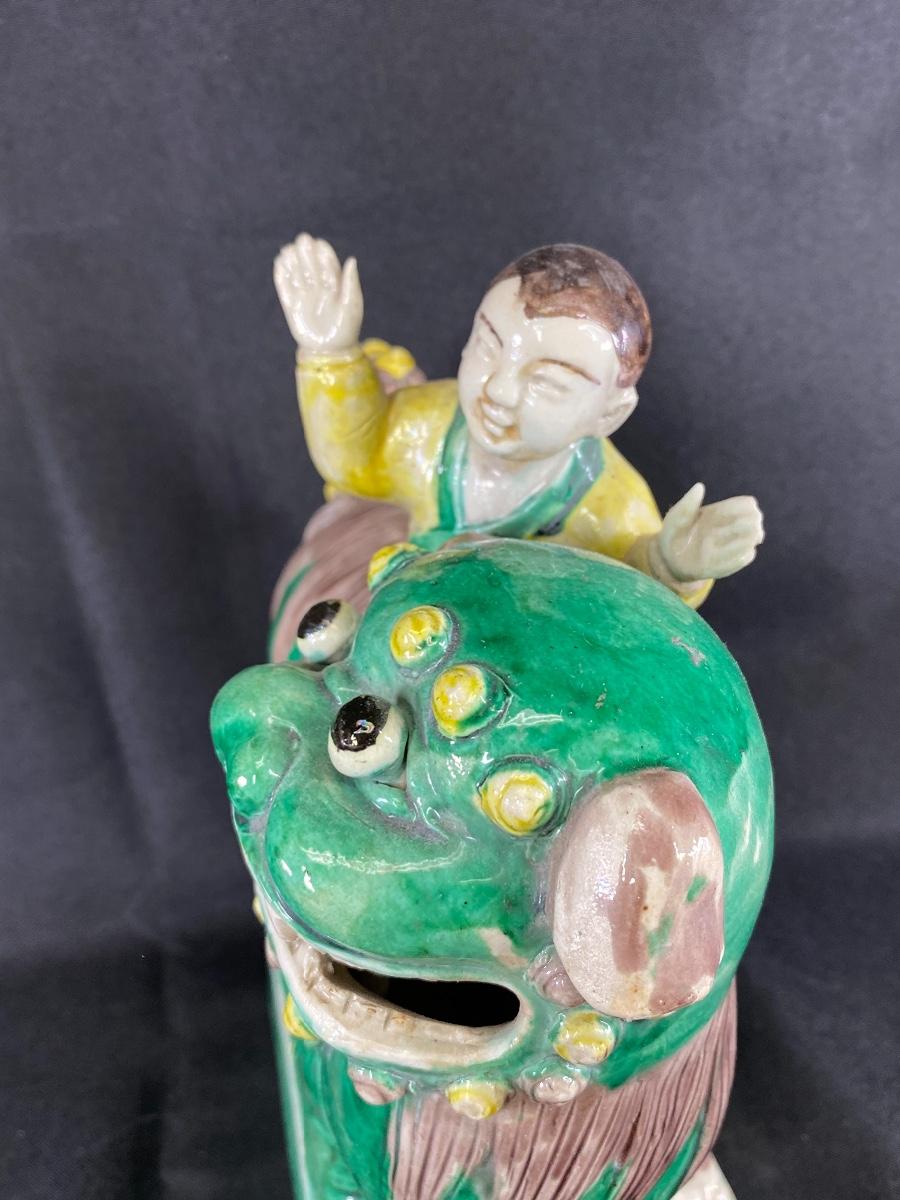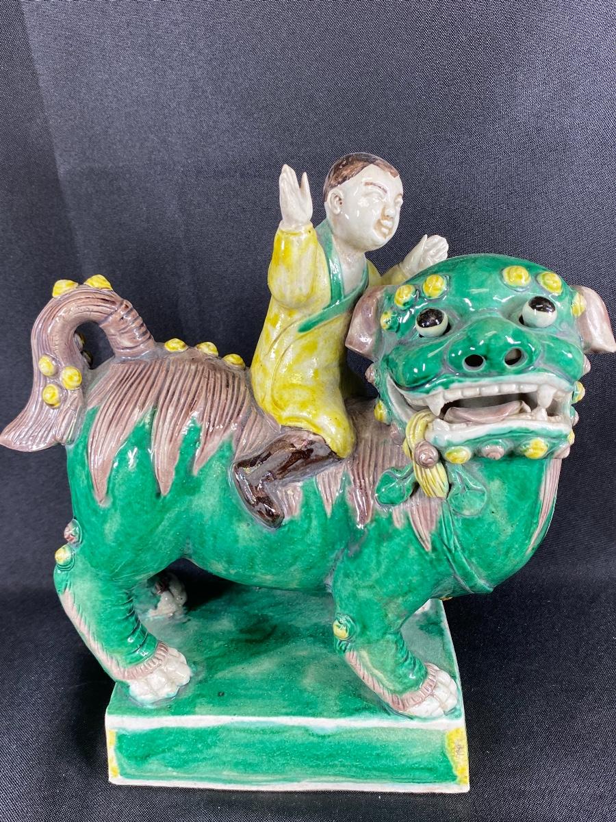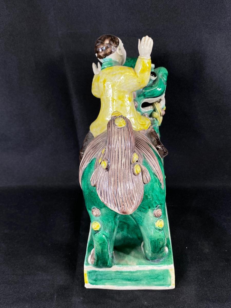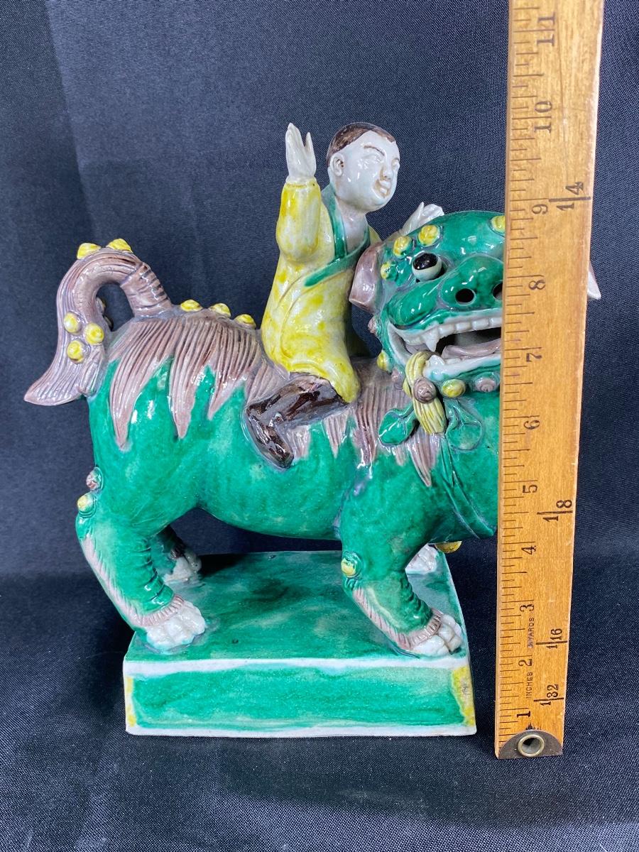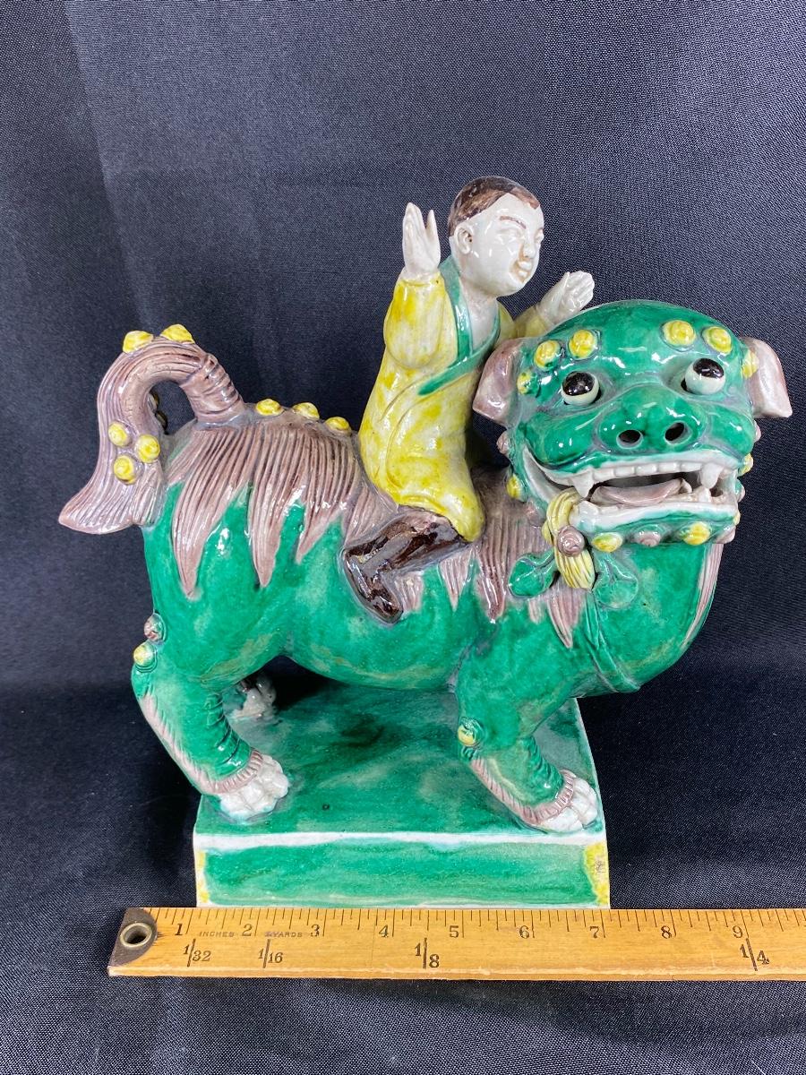 Green & Yellow Foo Dog Lion Dragon Figurine Statue Bookends