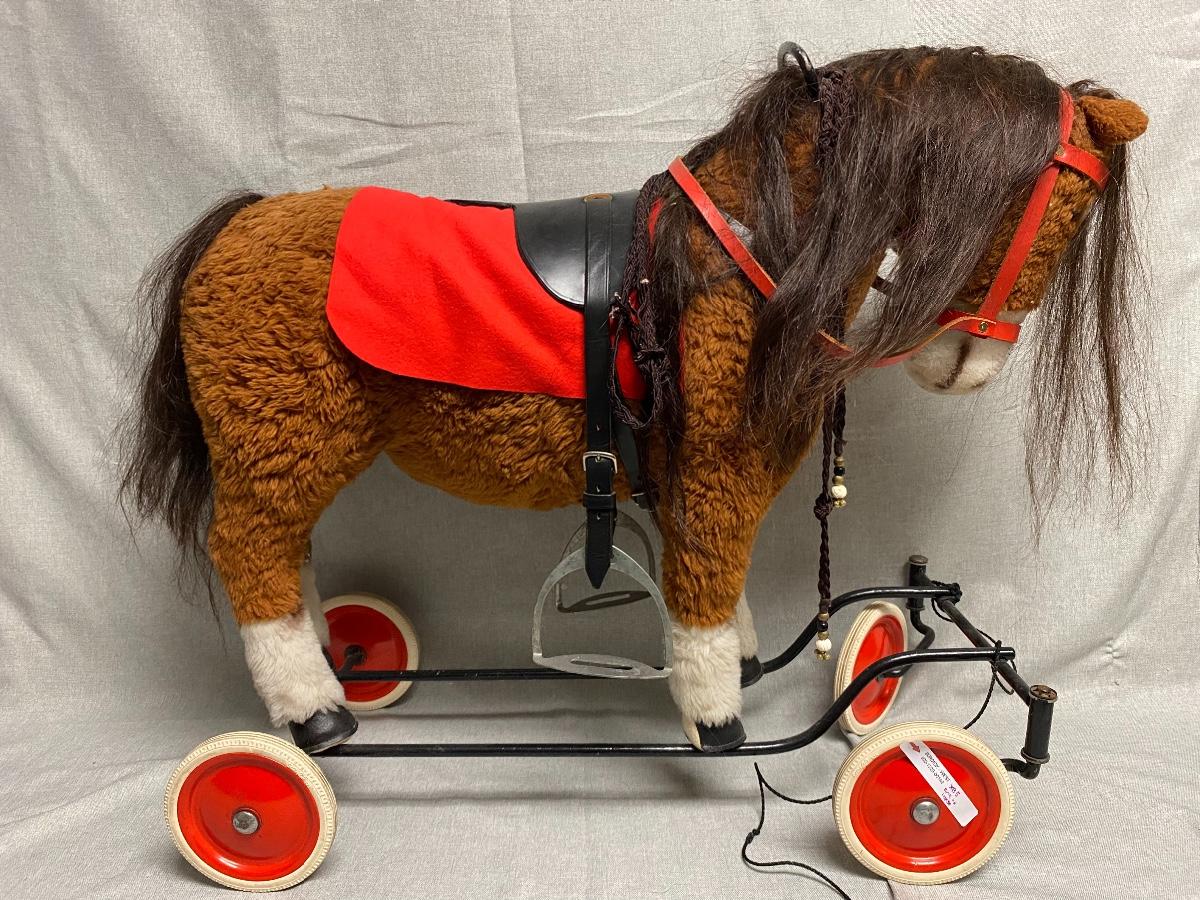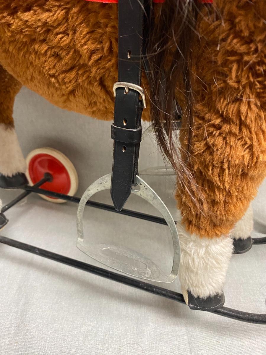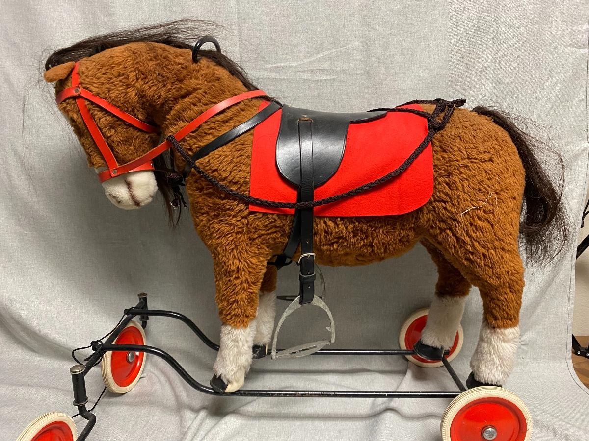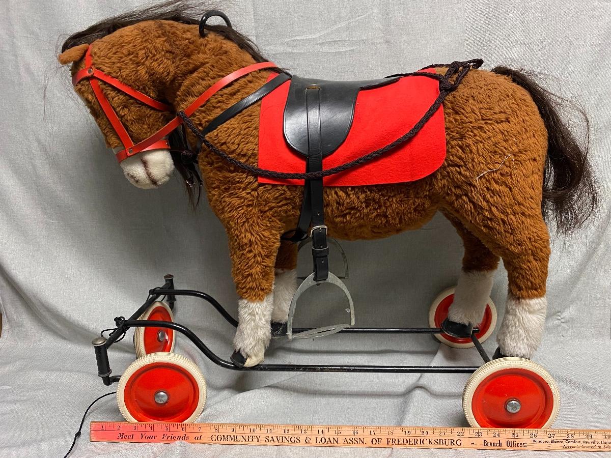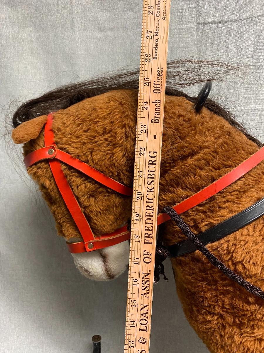 Toddler/Small Child size horse ride on toy. Older but in good stable condition. About 21" at the back and 25" at top of head. No tags.