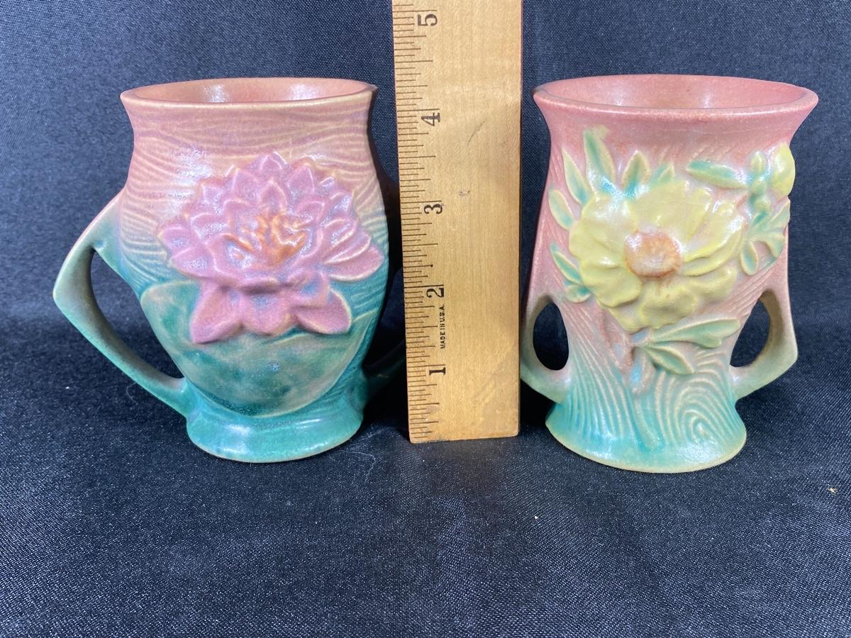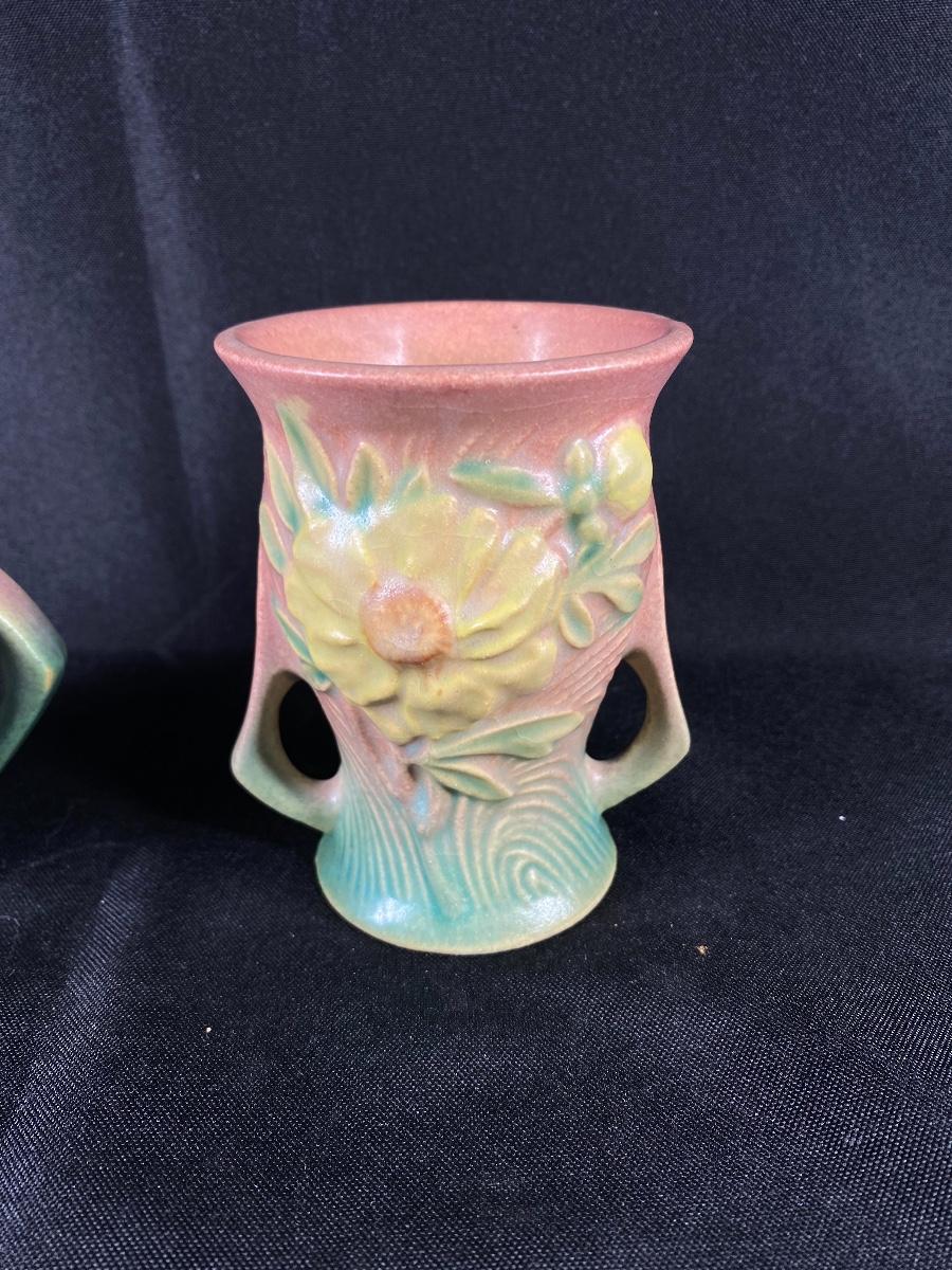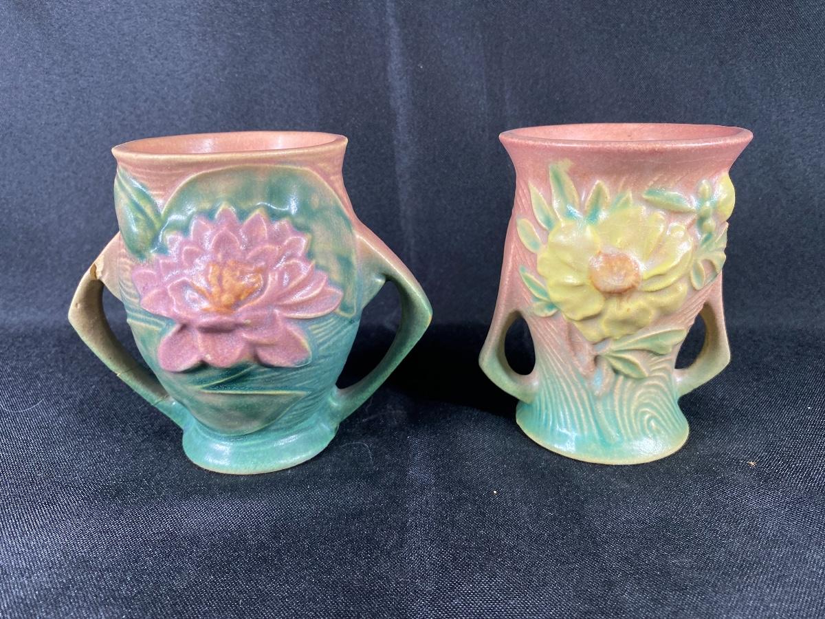 Pair of 4" Roseville Double Handle Pottery Urn Vase