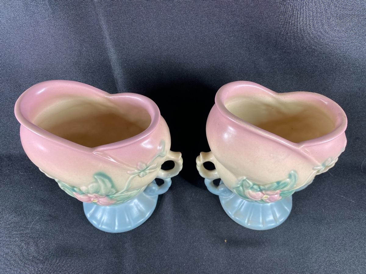 Vintage Matching Pink Blue Floral Hull Pottery Wildflower Double Handle Urn Vases