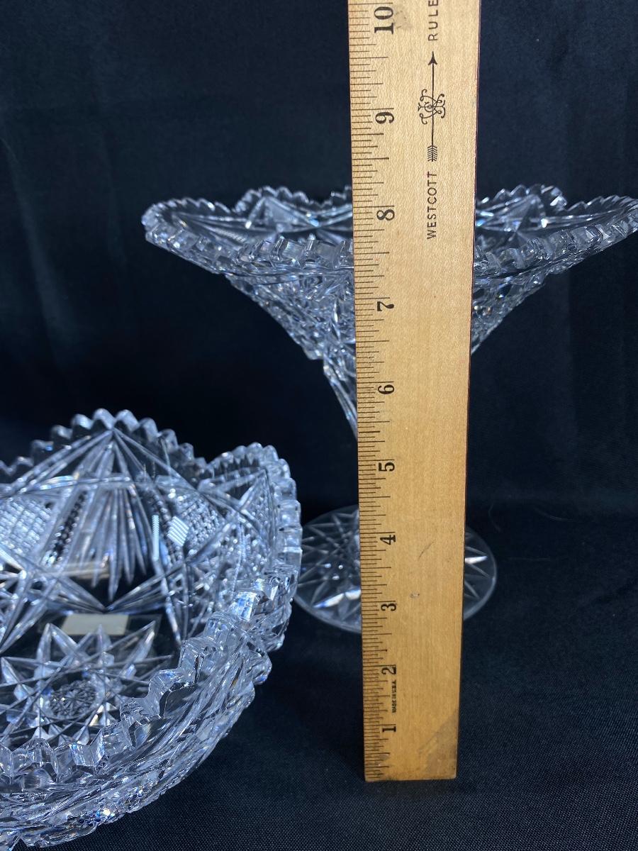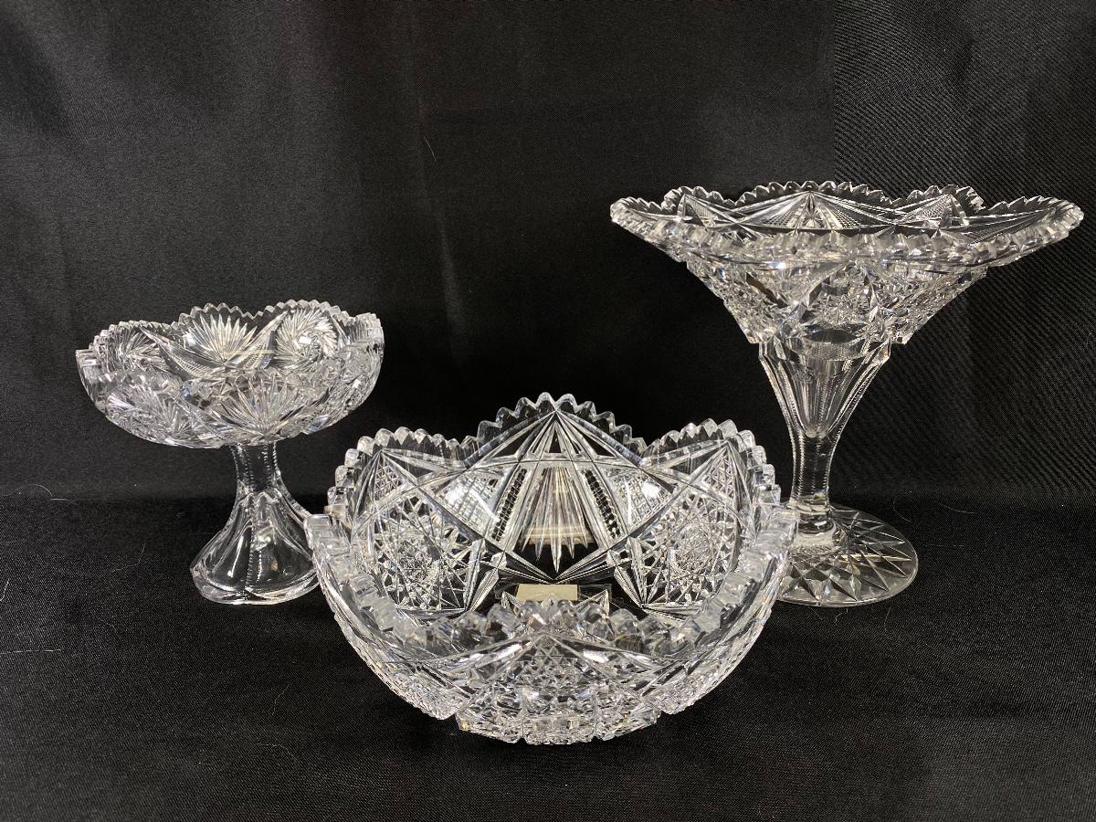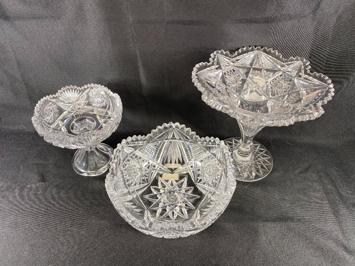 Set of 3 ABP Sawtooth Edge Cut Crystal Serving Dish Compote Bowl