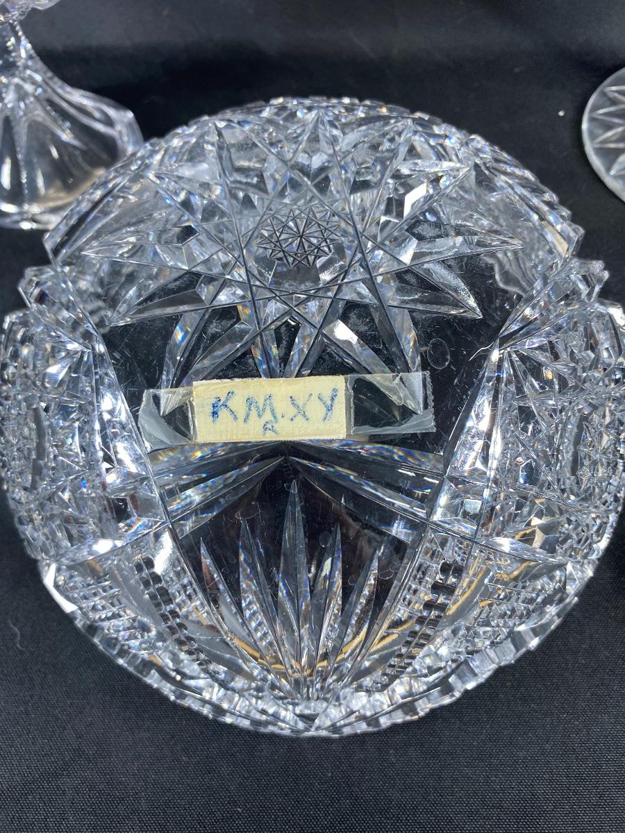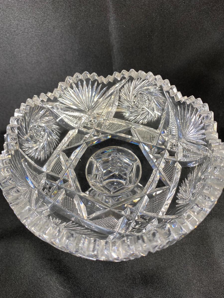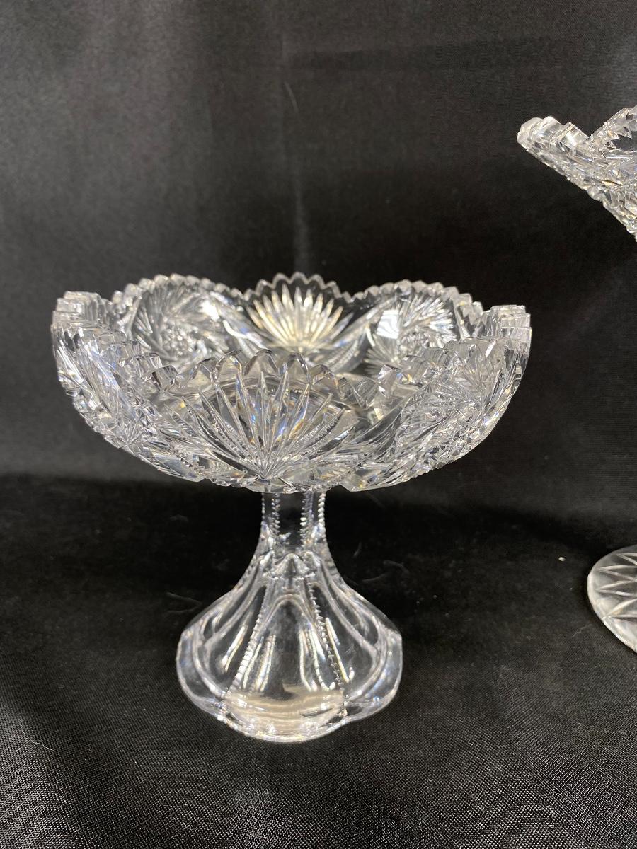 Set of 3 ABP Sawtooth Edge Cut Crystal Serving Dish Compote Bowl