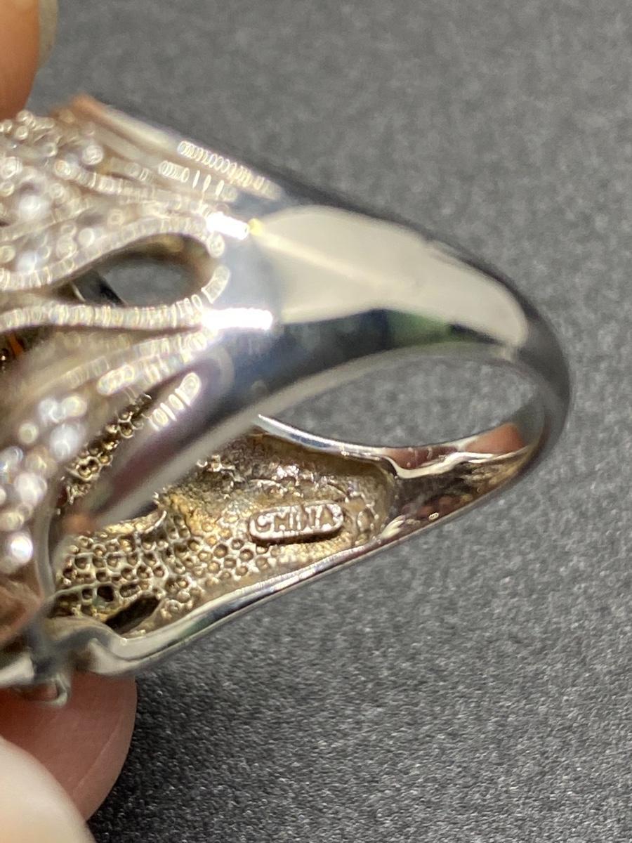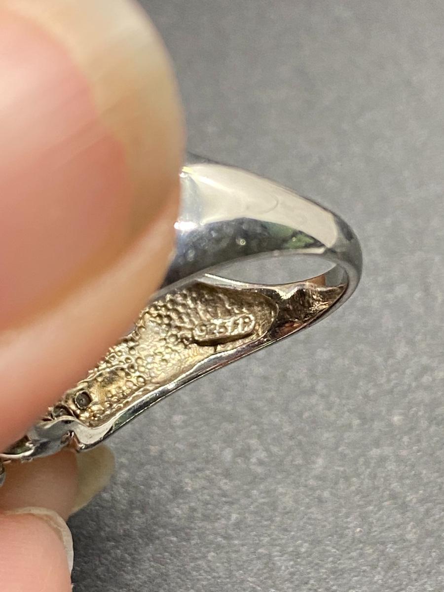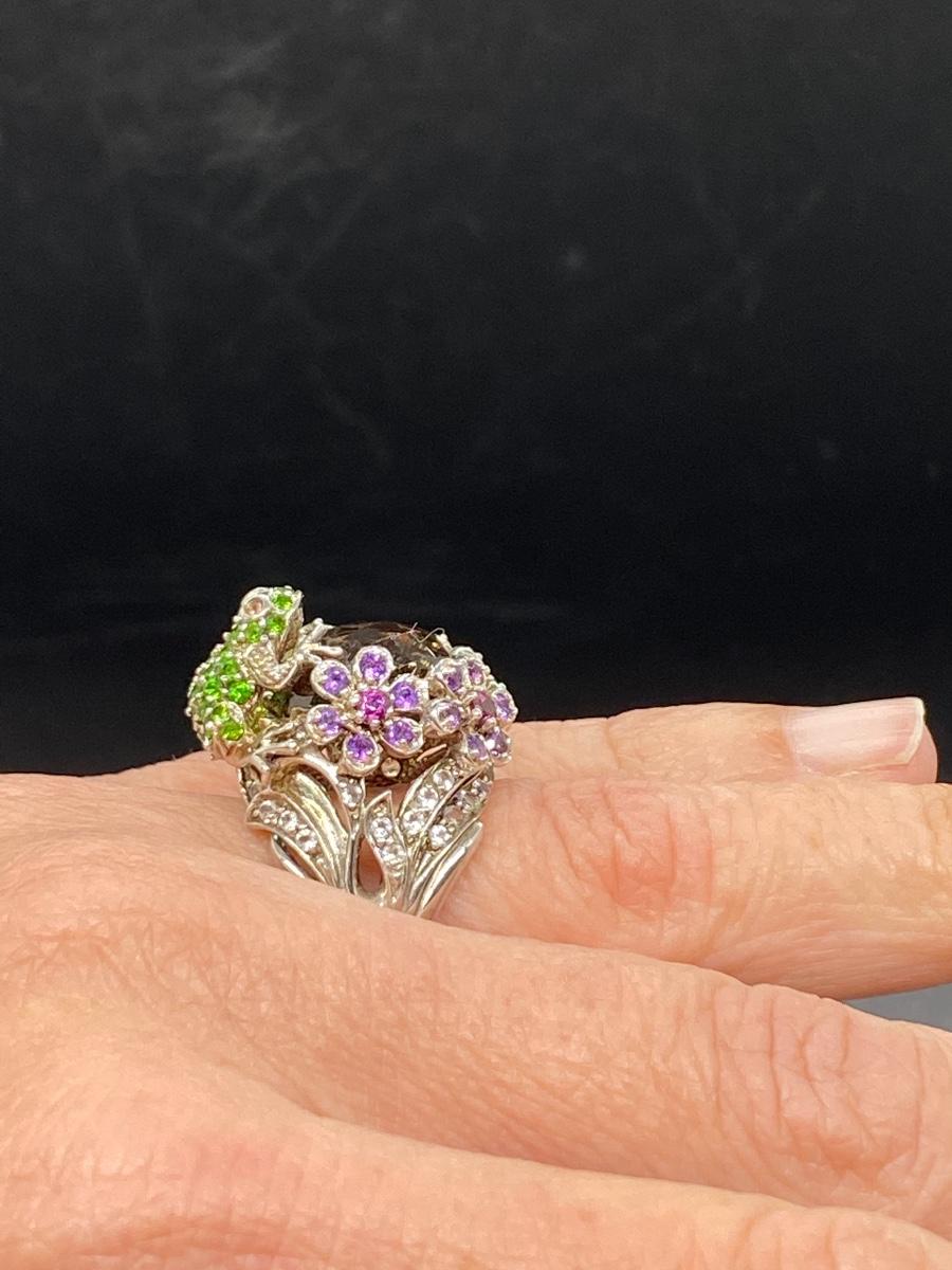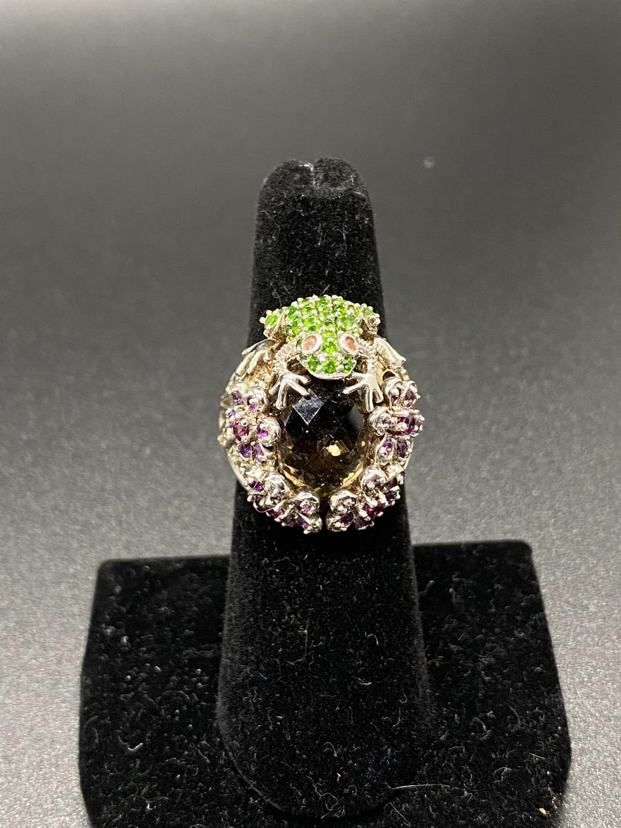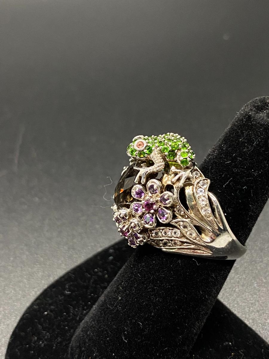 Rhinestone covered frog adorn cocktail ring. Sterling silver setting. Fits like a 7.