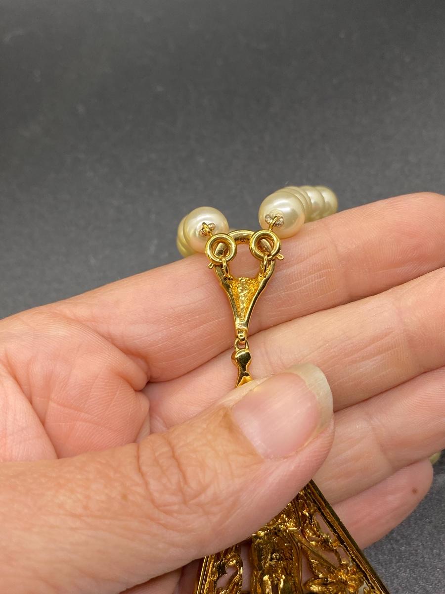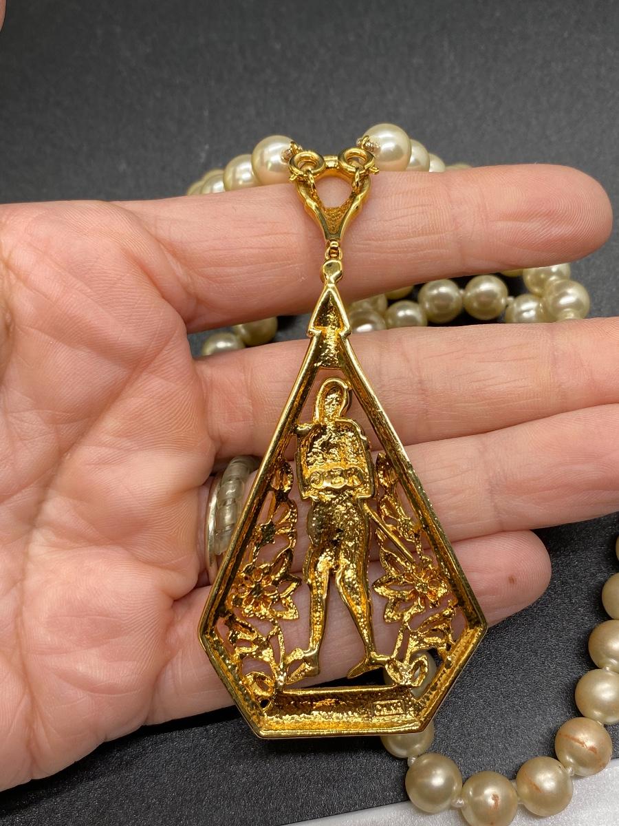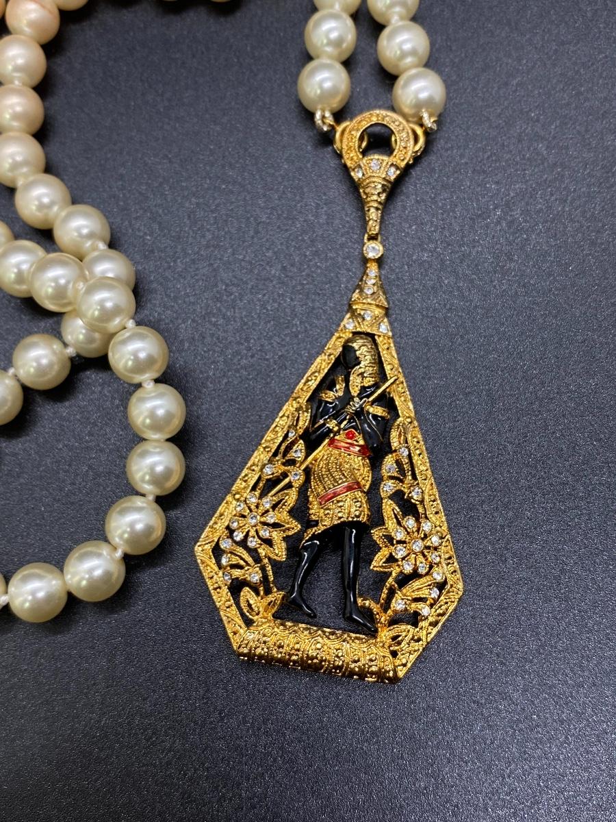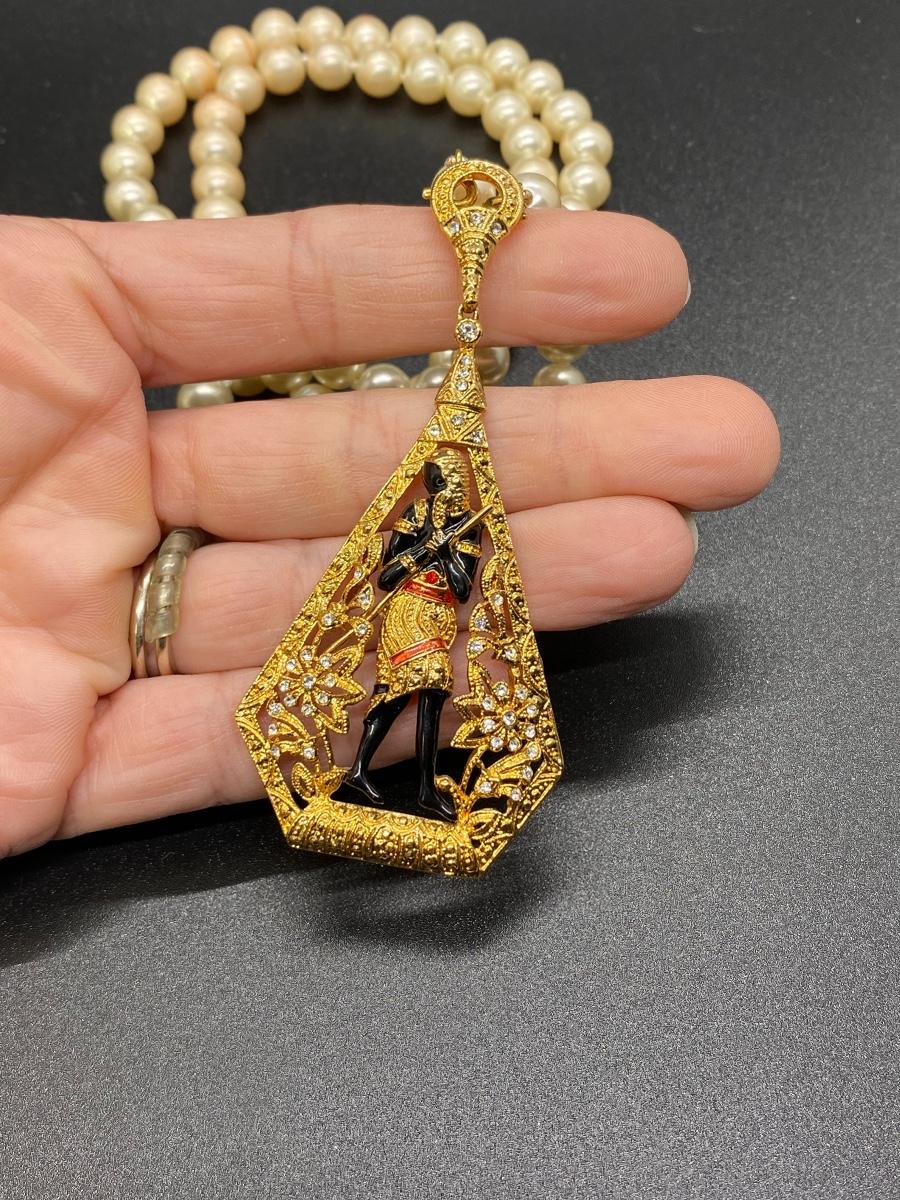 Vintage JBK Jaqueline Kennedy Egyptian Theme Pendant Faux Pearl Necklace
