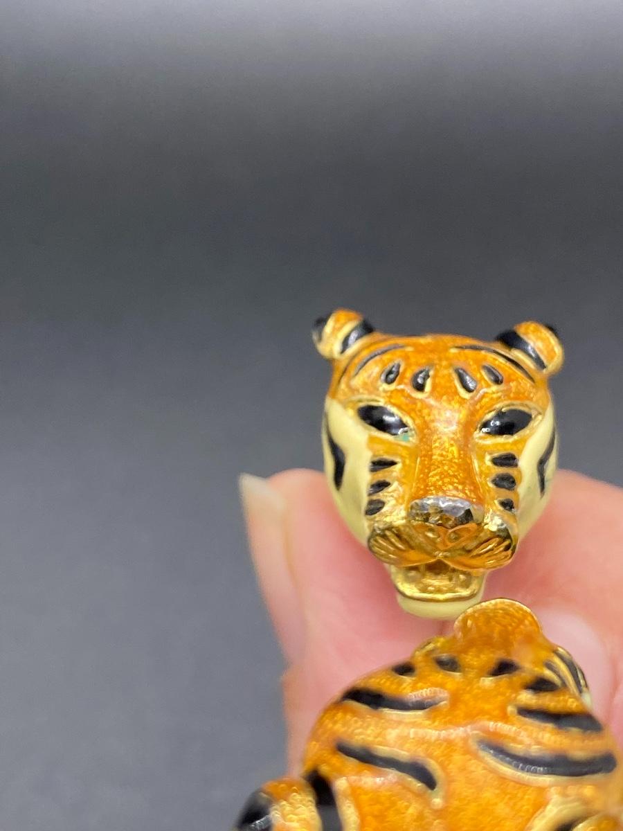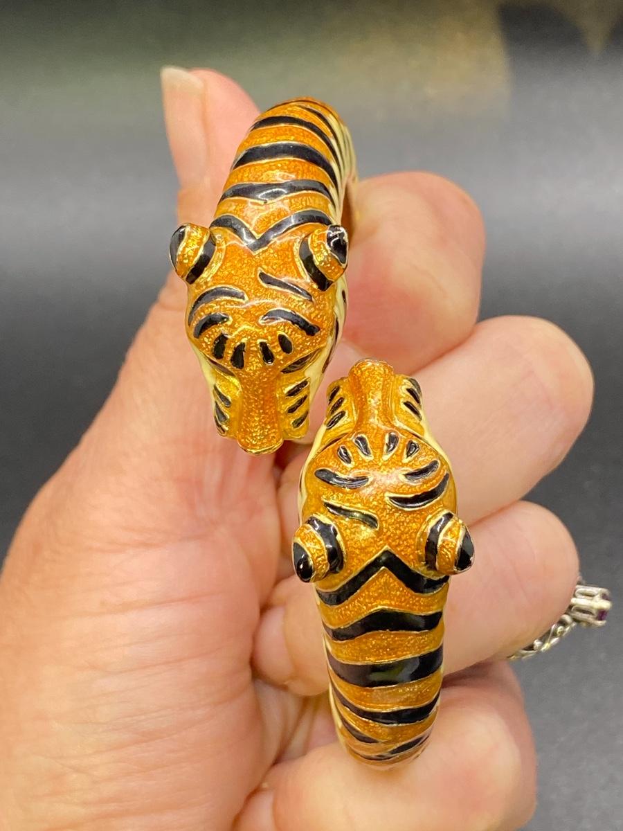 Vintage KJL Kenneth Jay Lane Enameled Tiger Spring Hinge Bangle Bracelet